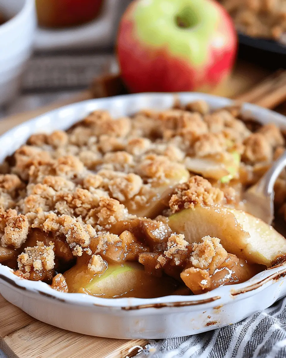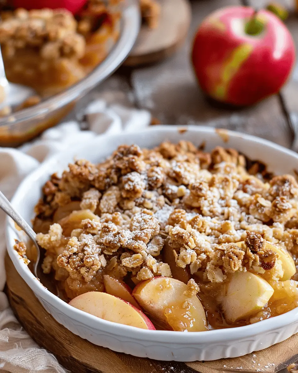 To keep your apple crumble fresh, store any leftovers in an airtight container. It’s best to refrigerate it to maintain moisture; simply reheat in the oven or microwave before serving. If you find you have more than you can eat, consider freezing portions! Just wrap the crumble tightly, and it can last up to three months. Reheating from frozen is a breeze—just pop it in the oven until warmed through and enjoy a comforting dessert all over again!