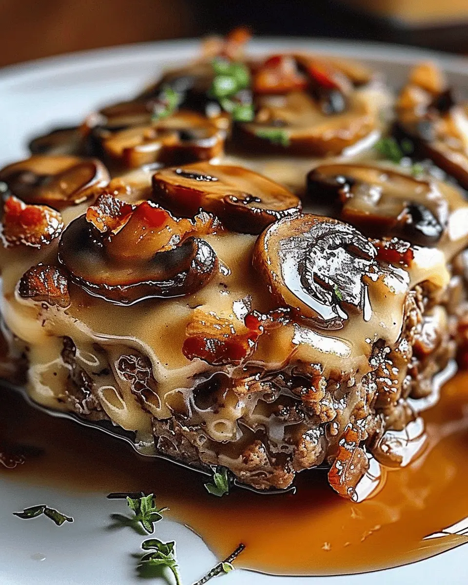 If you’re looking for a lighter twist, consider using chicken ham in combination with turkey bacon. This meatloaf variation not only reduces the overall fat content but also brings a subtle sweetness and moisture that pairs beautifully with the earthy flavors of mushrooms and Swiss cheese.
