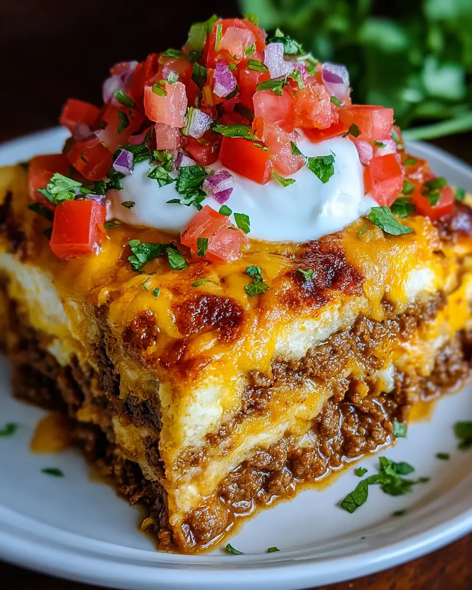 Once you take it out of the oven, let it cool for about 5 minutes so that everything sets nicely. Serve with a dollop of sour cream and maybe a side salad to balance the meal. Enjoy your masterpiece and don’t forget to share with family or friends—you’ll definitely impress them with your cooking skills!