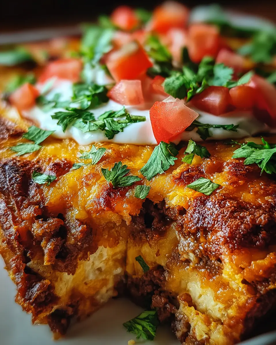 Now comes the fun part—assembling the casserole. Preheat your oven to 350°F (175°C). Start by greasing a large baking dish. Lay down a layer of tortillas at the bottom. Next, spoon a generous amount of the beef and veggie mixture over the tortillas. Sprinkle half of your cheese on top, then repeat the layers with more tortillas and beef mixture, finishing with a final layer of tortillas topped off with the remaining cheese. Feel free to get creative here—layering can totally reflect your personal style!