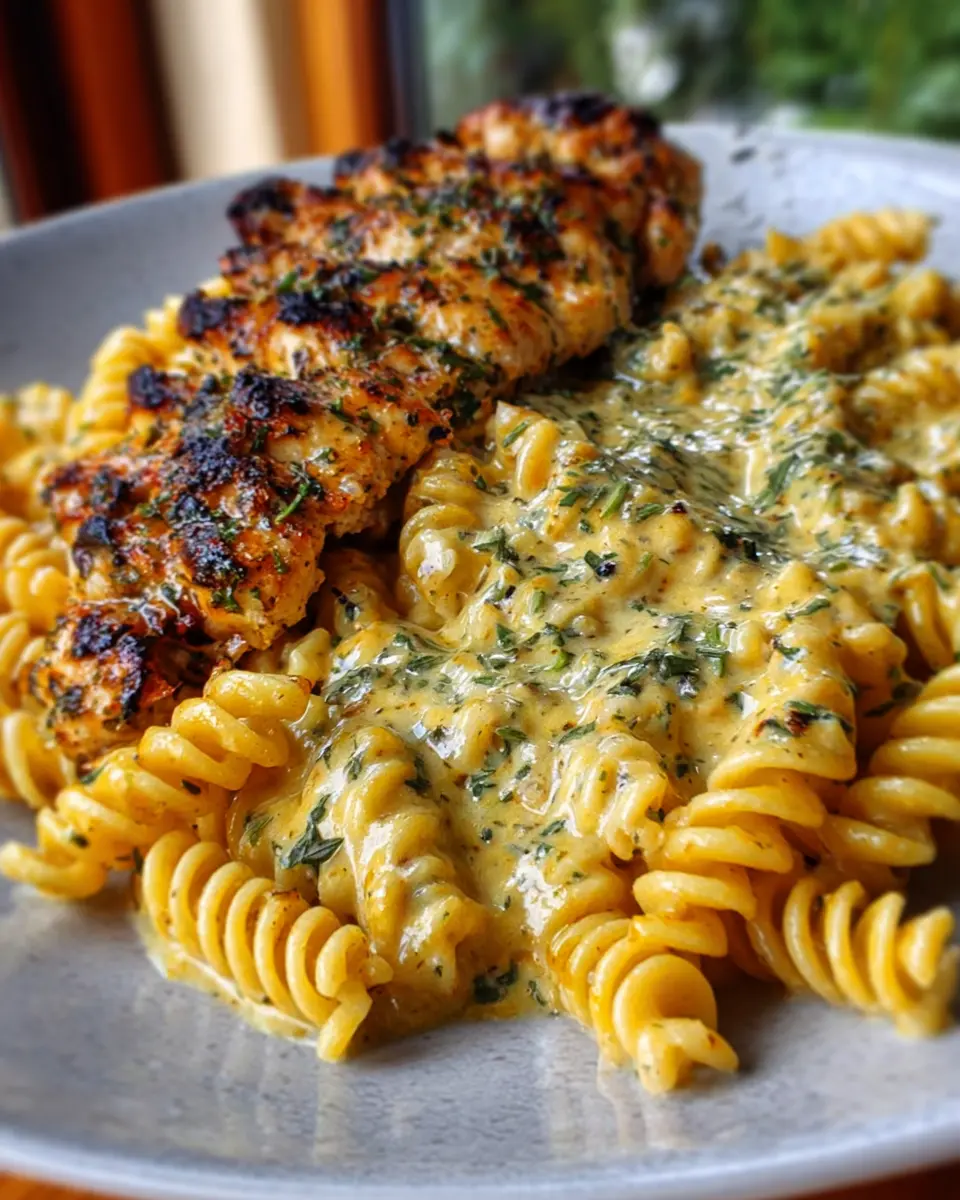 This Butter Herb Chicken with Creamy Four-Cheese Rotini recipe combines savory flavors and creamy textures for an indulgent meal.