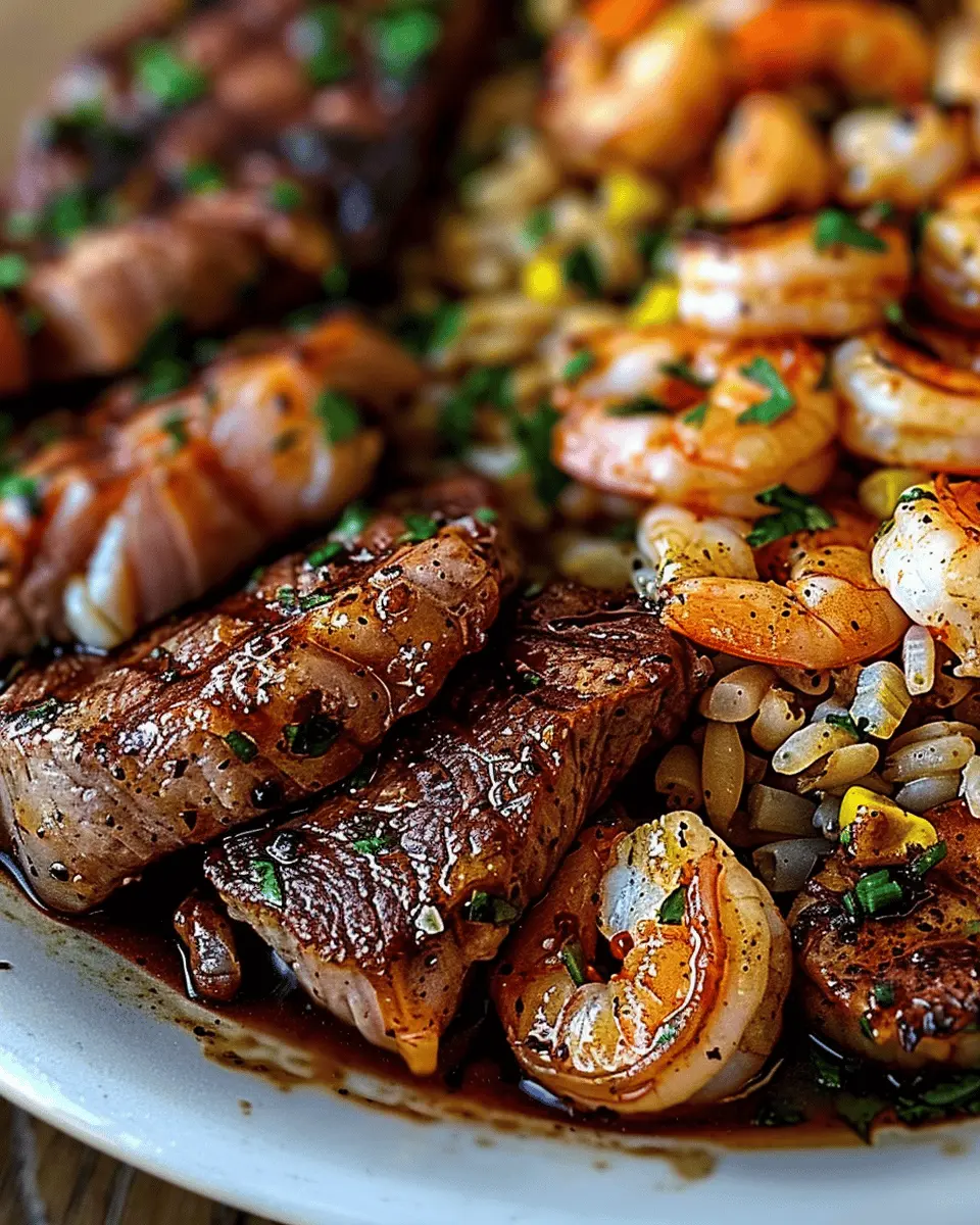 Presentation is key! To make your feast Instagram-worthy, consider garnishing with freshly chopped parsley or cilantro for a pop of color. Slices of lime not only add visual appeal but also a burst of brightness to each plate. You could even arrange the shrimp and steak on a bed of arugula or baby spinach, creating an inviting contrast that will leave everyone excited to dig in.