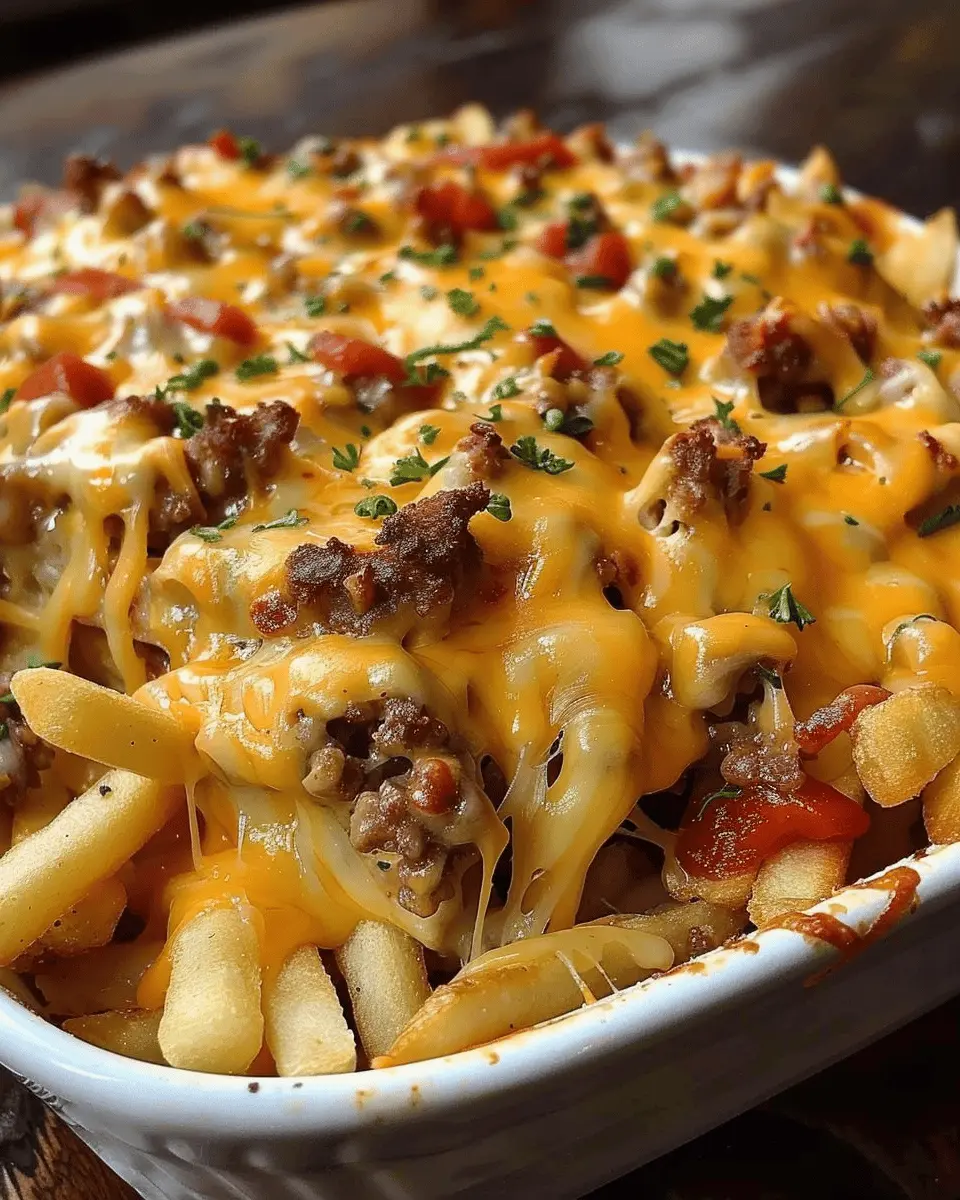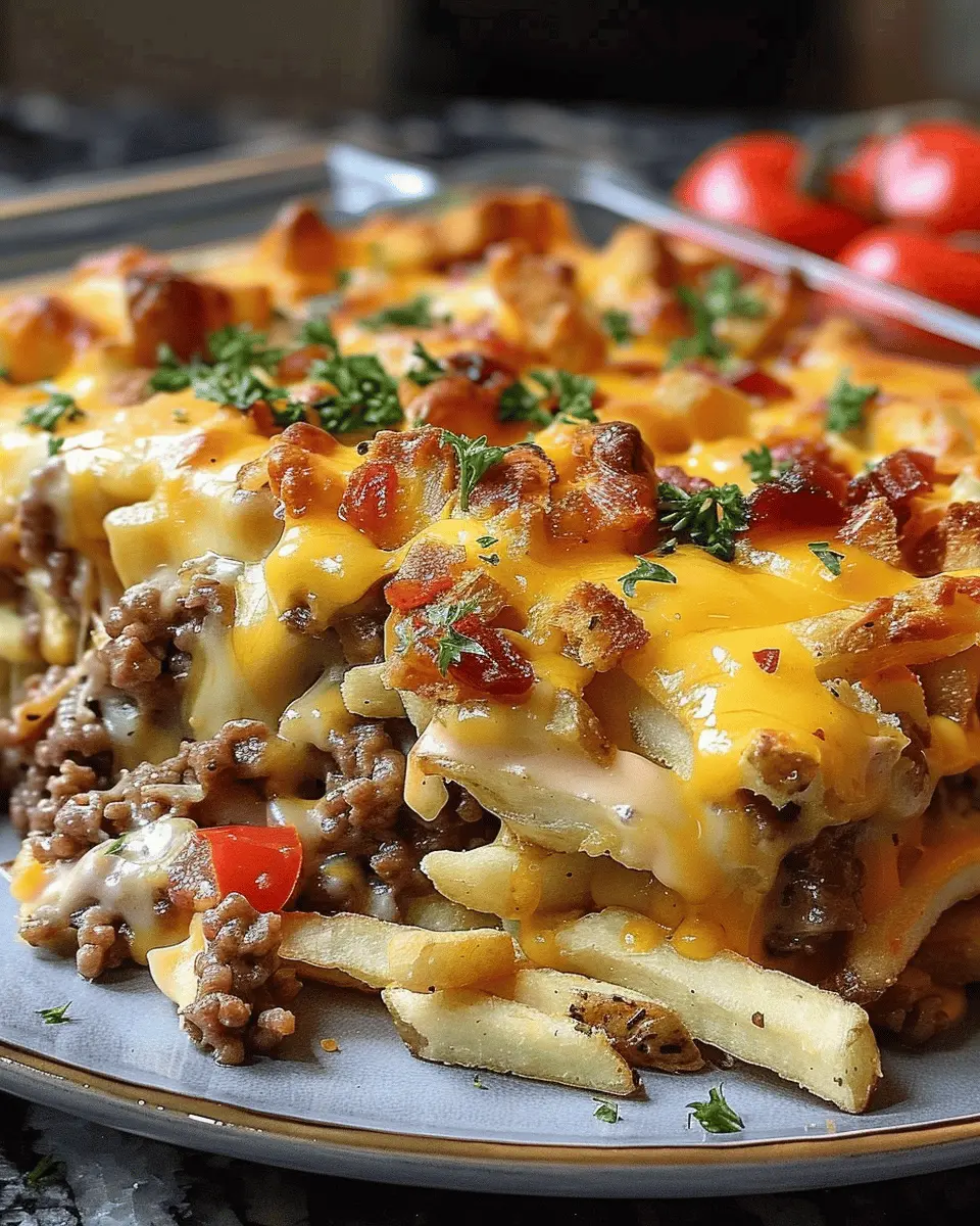 1. Simple Yet Satisfying: One of the best features of this dish is its simplicity. With just a handful of ingredients, you can create a meal that feels gourmet. Ground beef, turkey bacon, cheese, and French fries come together effortlessly, making it perfect for busy weeknights or relaxed weekends.