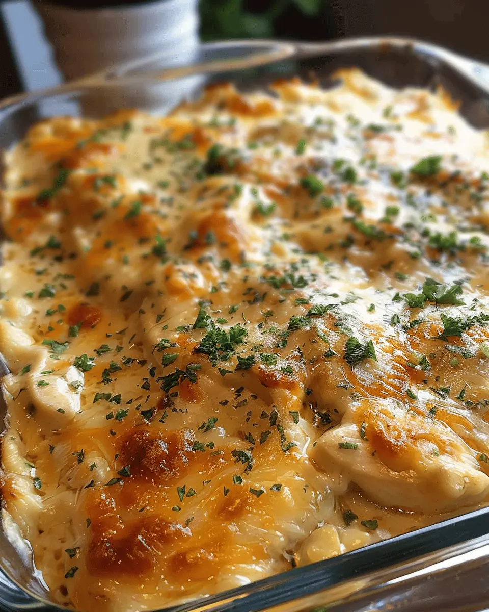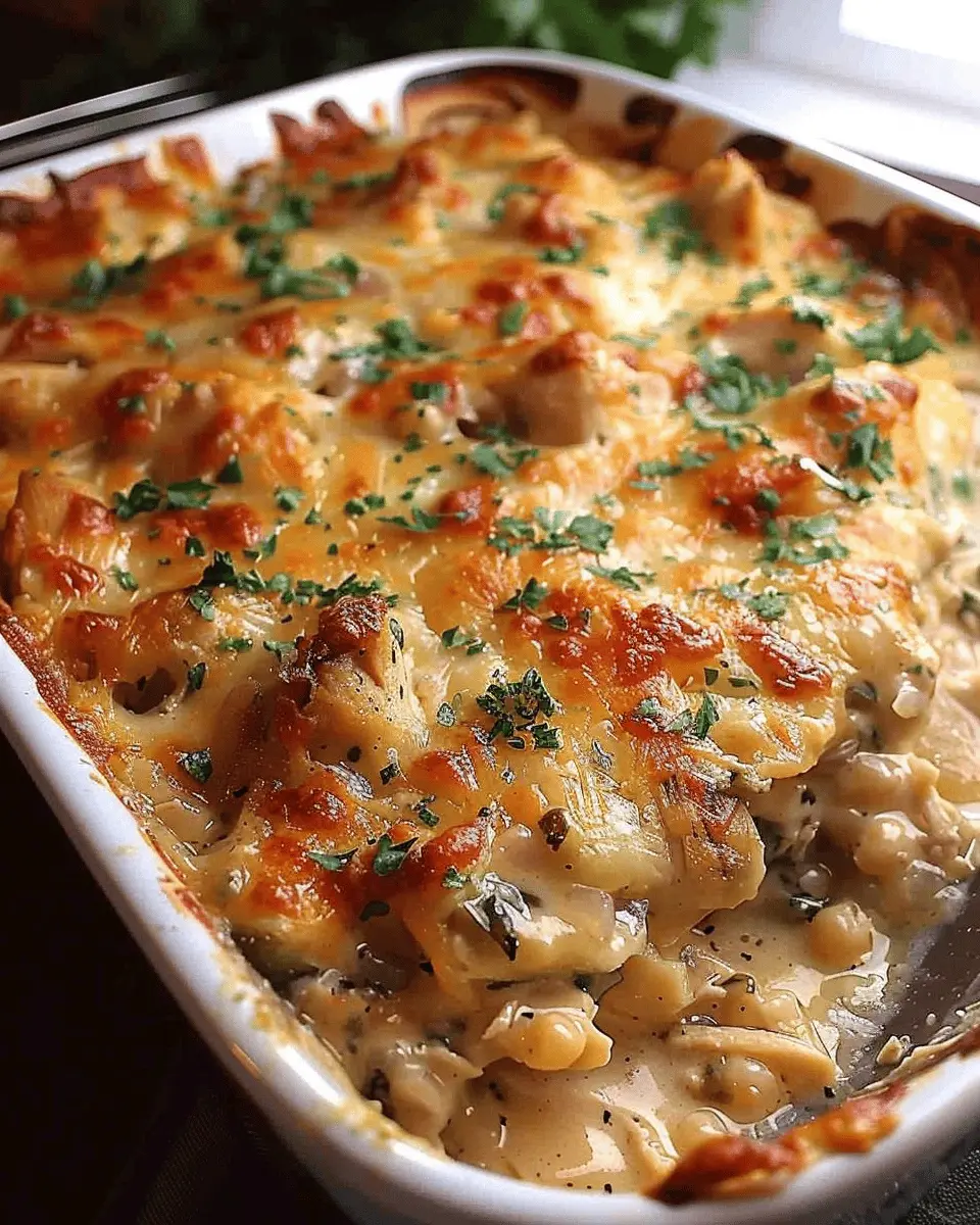 A delightful casserole featuring cheesy goodness and tender chicken, perfect for comfort food lovers.
