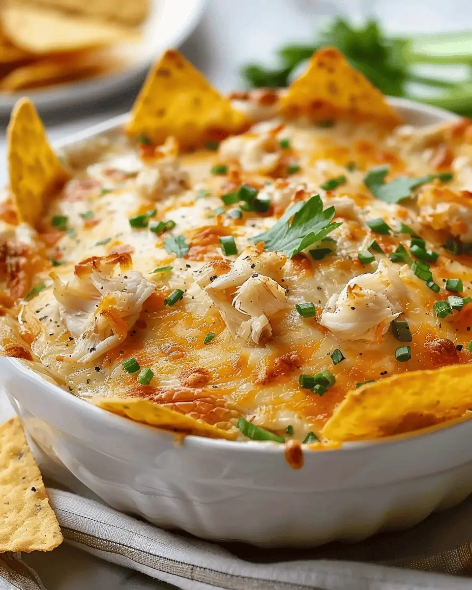 First off, the flavor profile is irresistible. Picture this: rich cream cheese blended with lump crab meat and just the right touch of green onions and spices. It strikes that perfect balance between savory and creamy, making it hard for anyone to resist going back for seconds—or thirds! Whether you’re serving it with crispy tortilla chips, fresh veggie sticks, or even some toasted baguette slices, this dip is the star of the show.
