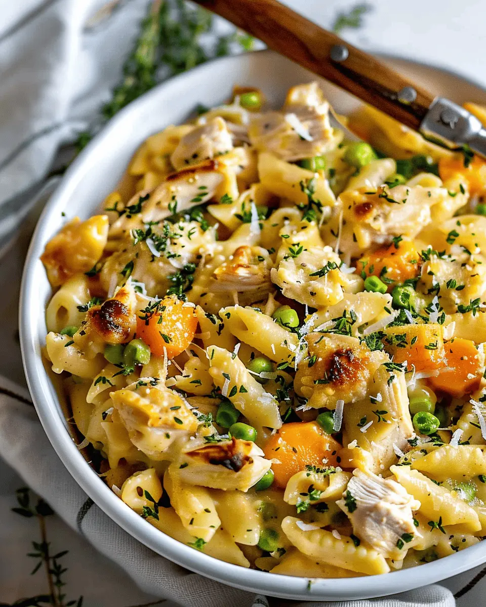 PrintChicken Pot Pie Pasta Recipe: Indulgent Comfort Food Awaits