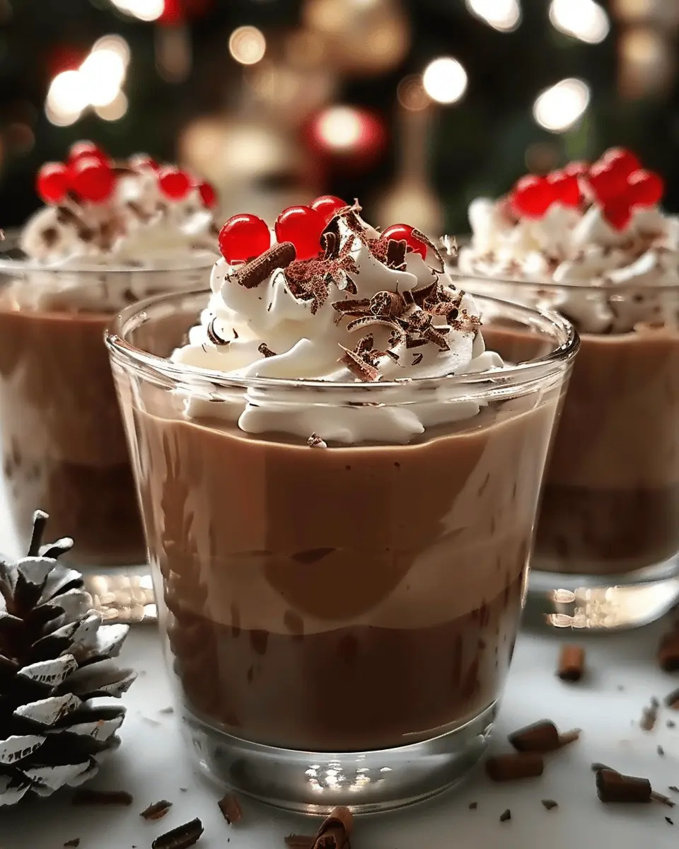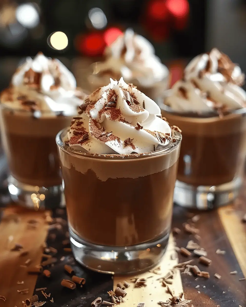 Indulge in these creamy and delicious chocolate pudding shots with a festive twist, perfect for your holiday celebrations!