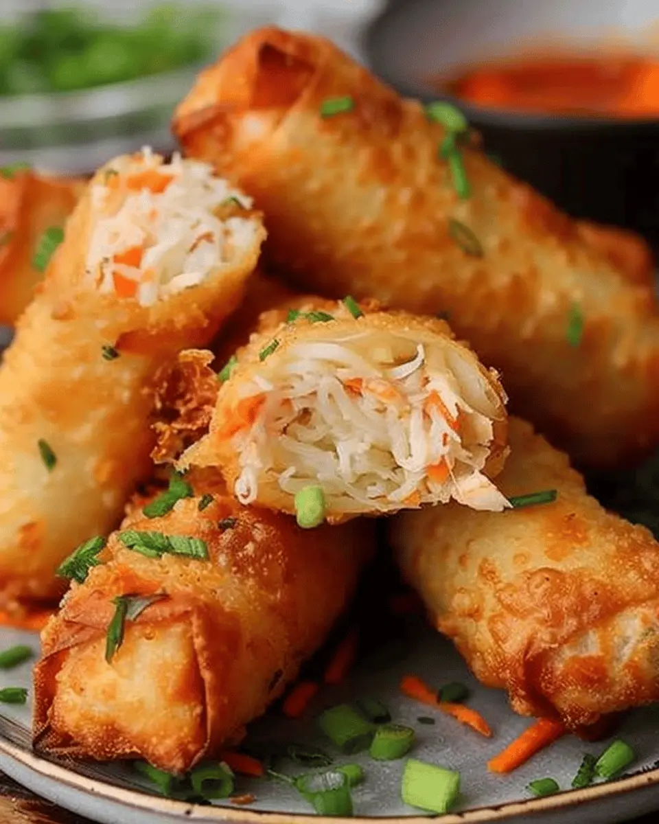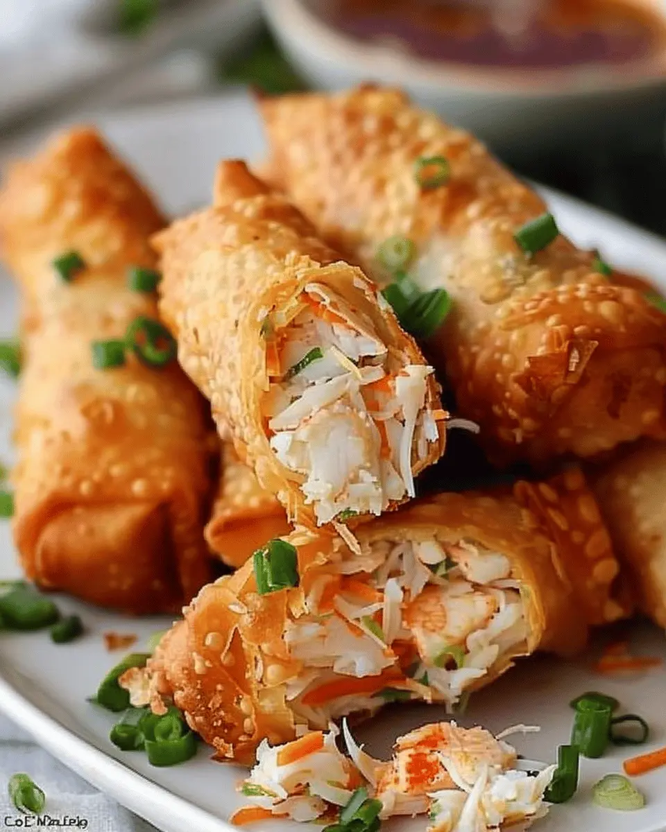 Indulge in the rich flavors of crab cake egg rolls, a delightful fusion of crispy rolls and savory crab filling.