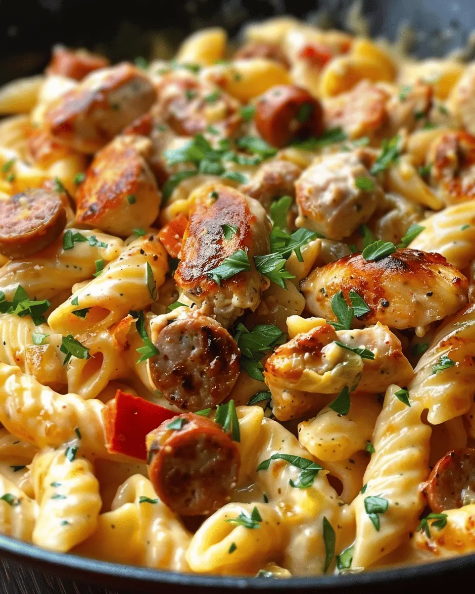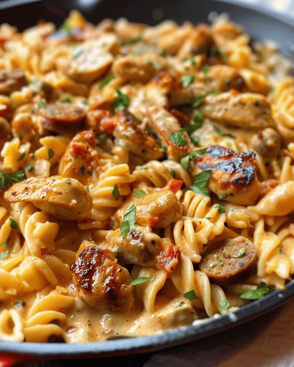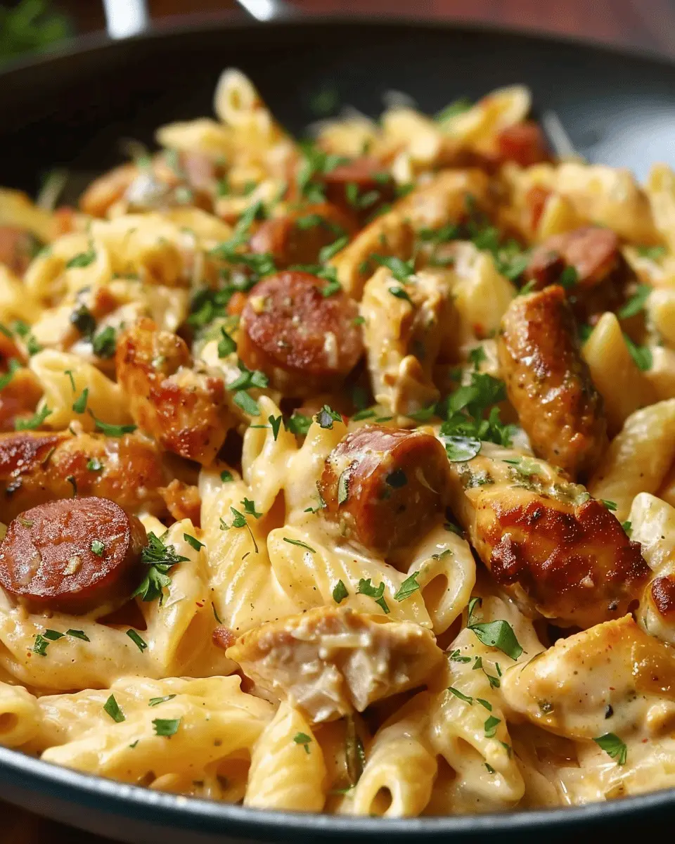 Creamy Cajun Chicken and Sausage Pasta Skillet
