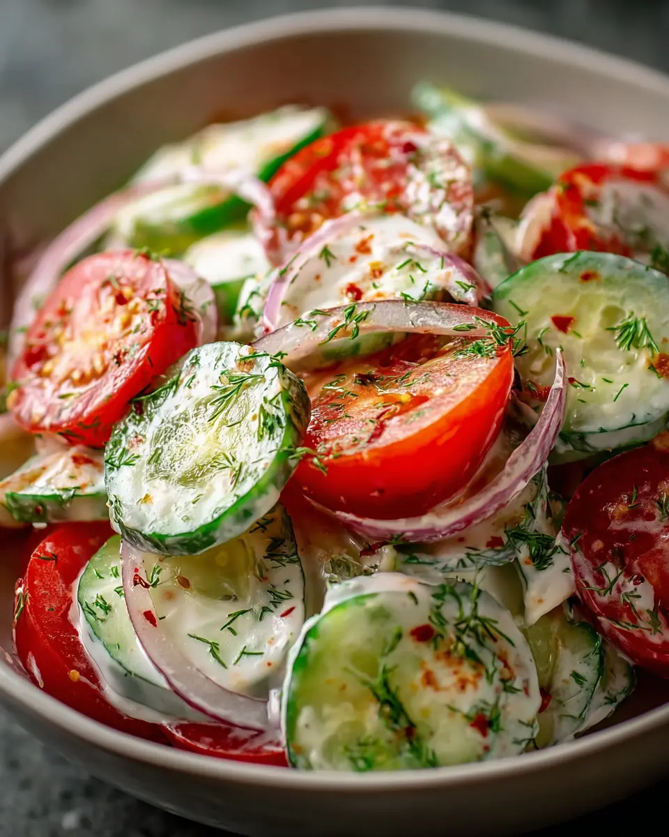 Creating a Creamy Cucumber Tomato Salad is an easy and rewarding experience. This refreshing dish is perfect for hot summer days or as a vibrant side for any meals. Let’s dive into each step of preparing this delectable salad!