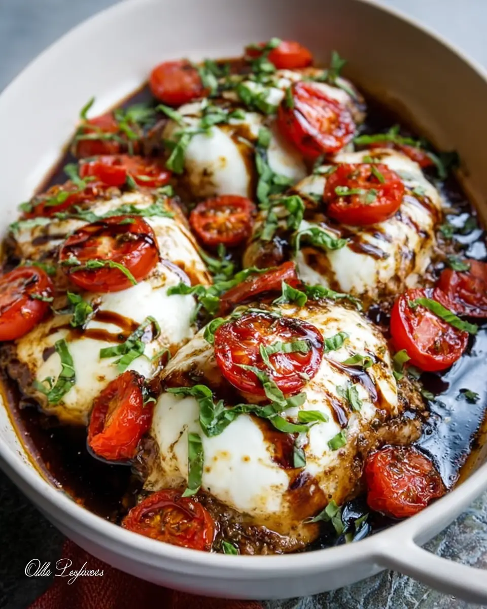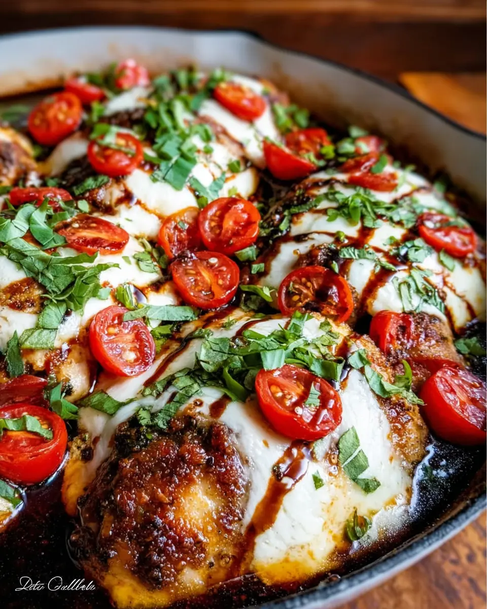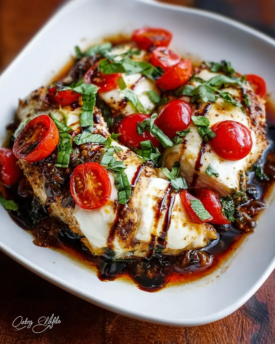 Keywords: Creamy Mozzarella, Caprese, Chicken Bake, Balsamic Drizzle
