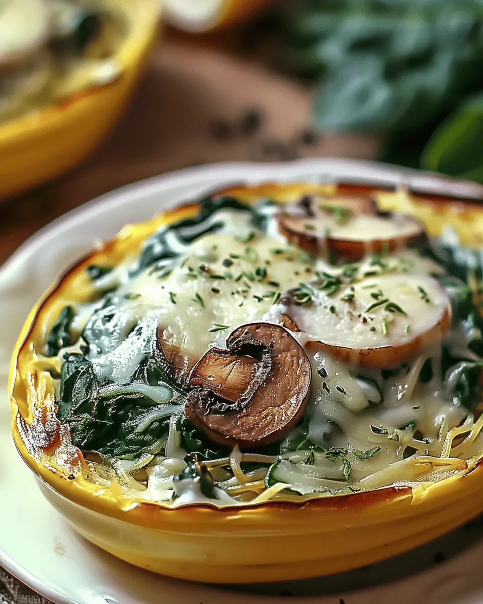 Now it’s time to bring everything together! Fold the creamy spinach mixture into your prepared spaghetti squash strands. Make sure to evenly distribute the spinach and sauce throughout; this ensures every bite is bursting with flavor.