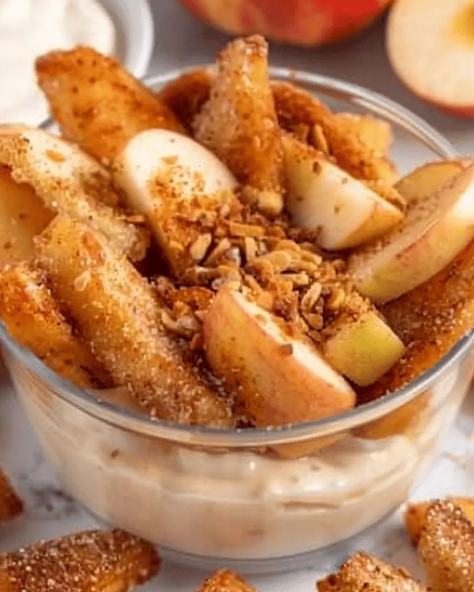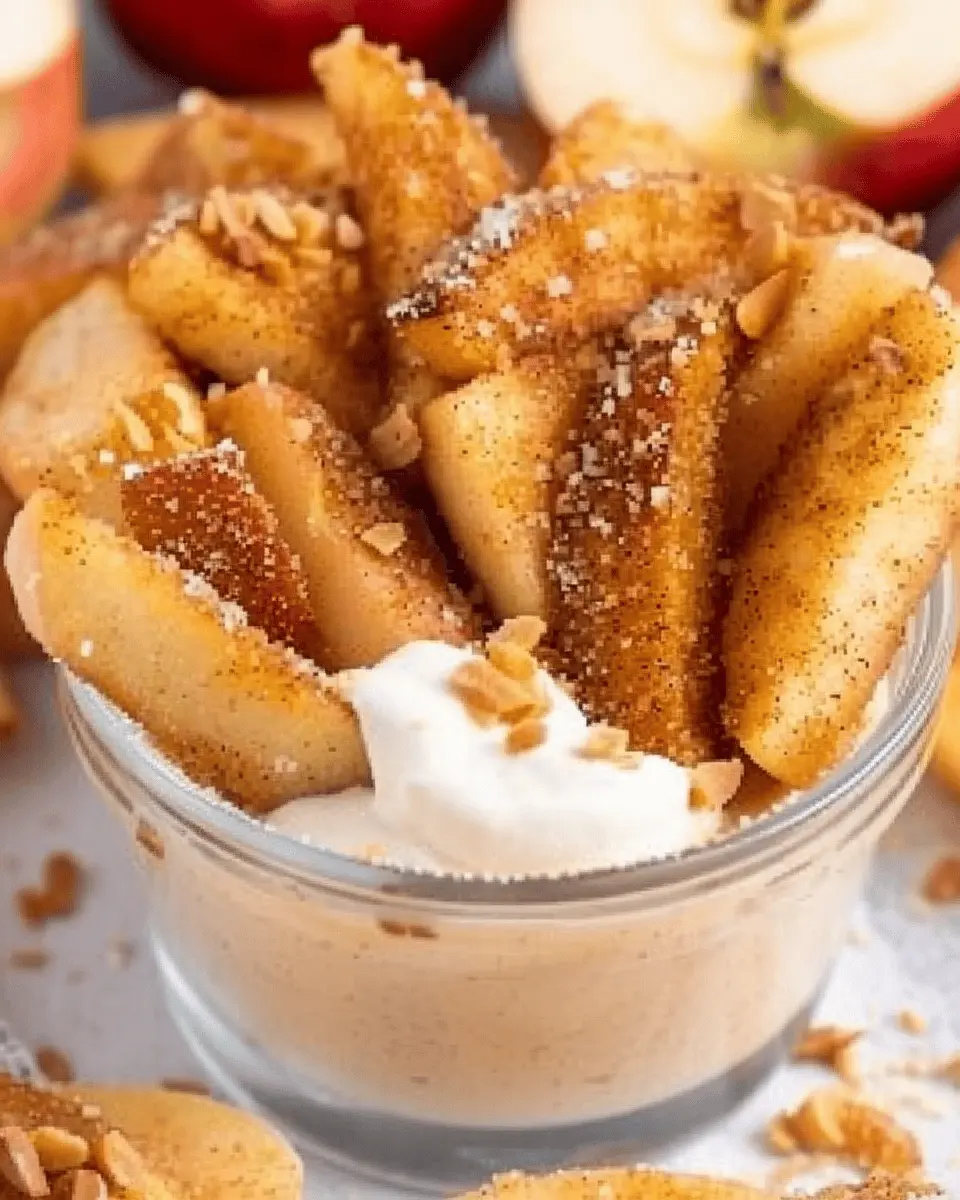 In under 30 minutes, you’ll have a delicious batch of crispy apple fries ready to enjoy. This makes them an ideal snack or dessert, especially when paired with your favorite dipping sauce—think caramel or yogurt!