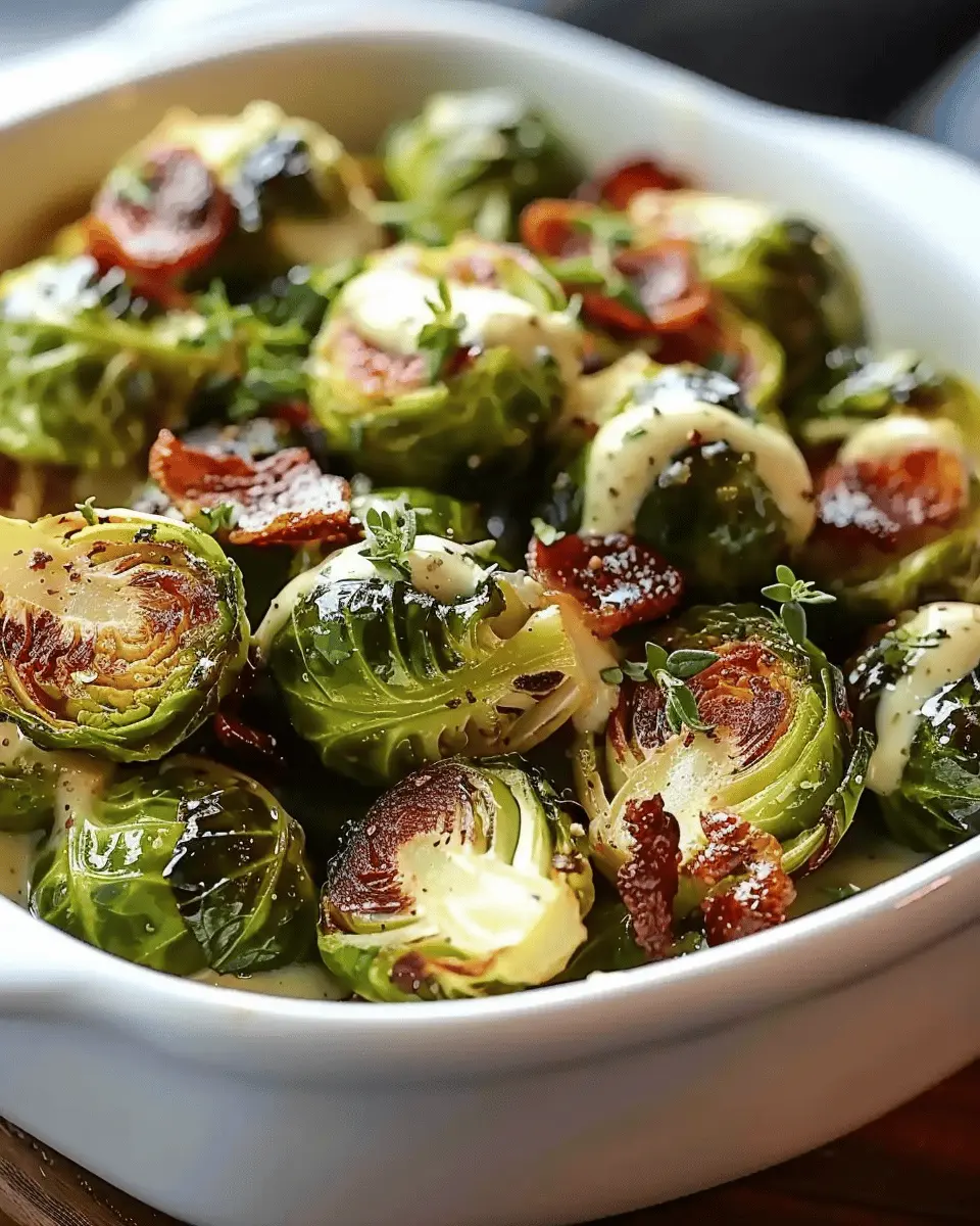 - Mix It Up: In a large bowl, combine the roasted Brussels sprouts, turkey bacon, and sautéed onions and garlic. Drizzle your creamy mustard sauce over everything and toss gently to combine.