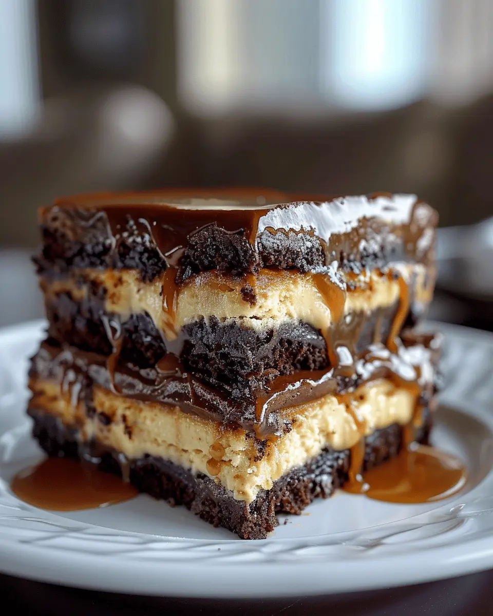 Decadent Caramel Brownie Cheesecake: Indulge in 3 Layers of Bliss