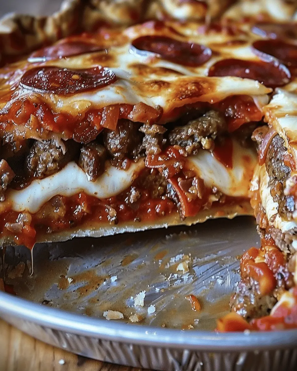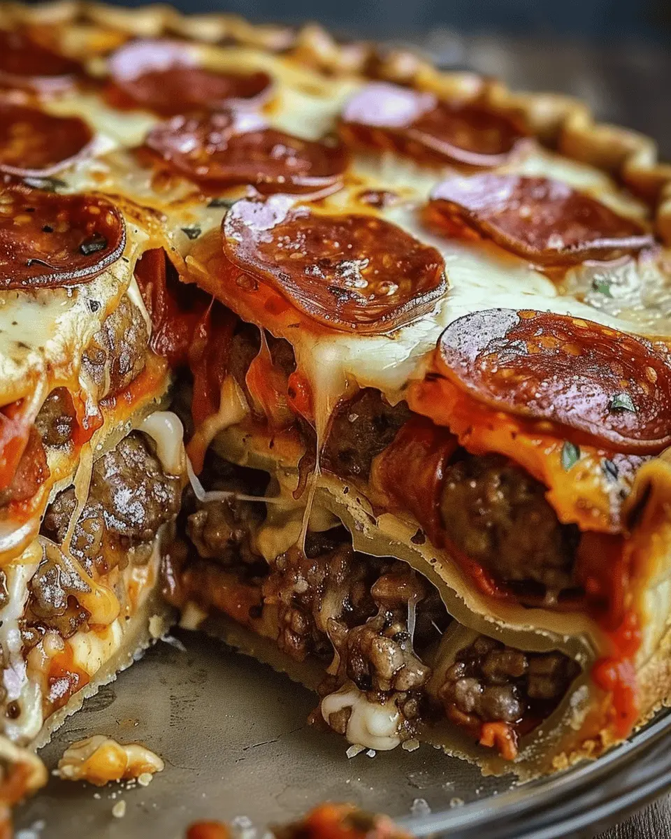 Experience the rich flavors of a Deep Hamburger Sausage & Pepperoni Pie that’s perfect for any home chef looking for a delicious meal.