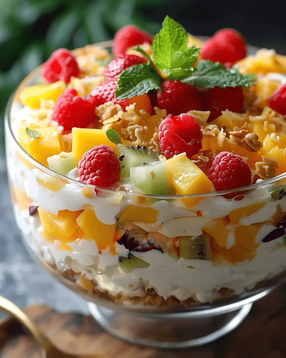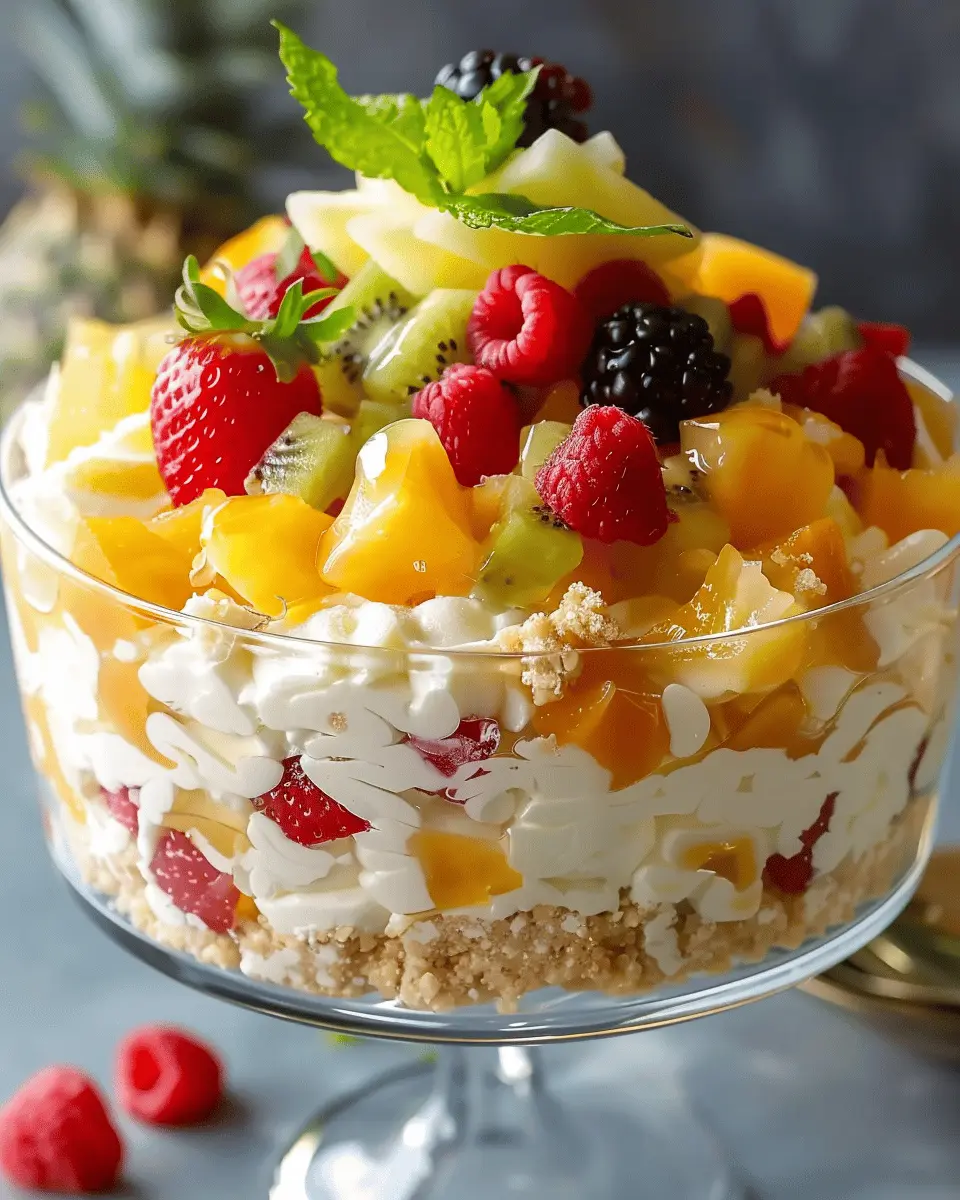 Quick and Effortless: One of the best parts about this dessert is how simple it is to whip up. With just a few ingredients—cream cheese, whipped topping, and your favorite fruits—you can create a stunning dish that wows everyone. Even if you’re not a seasoned cook, this recipe offers an opportunity to impress.