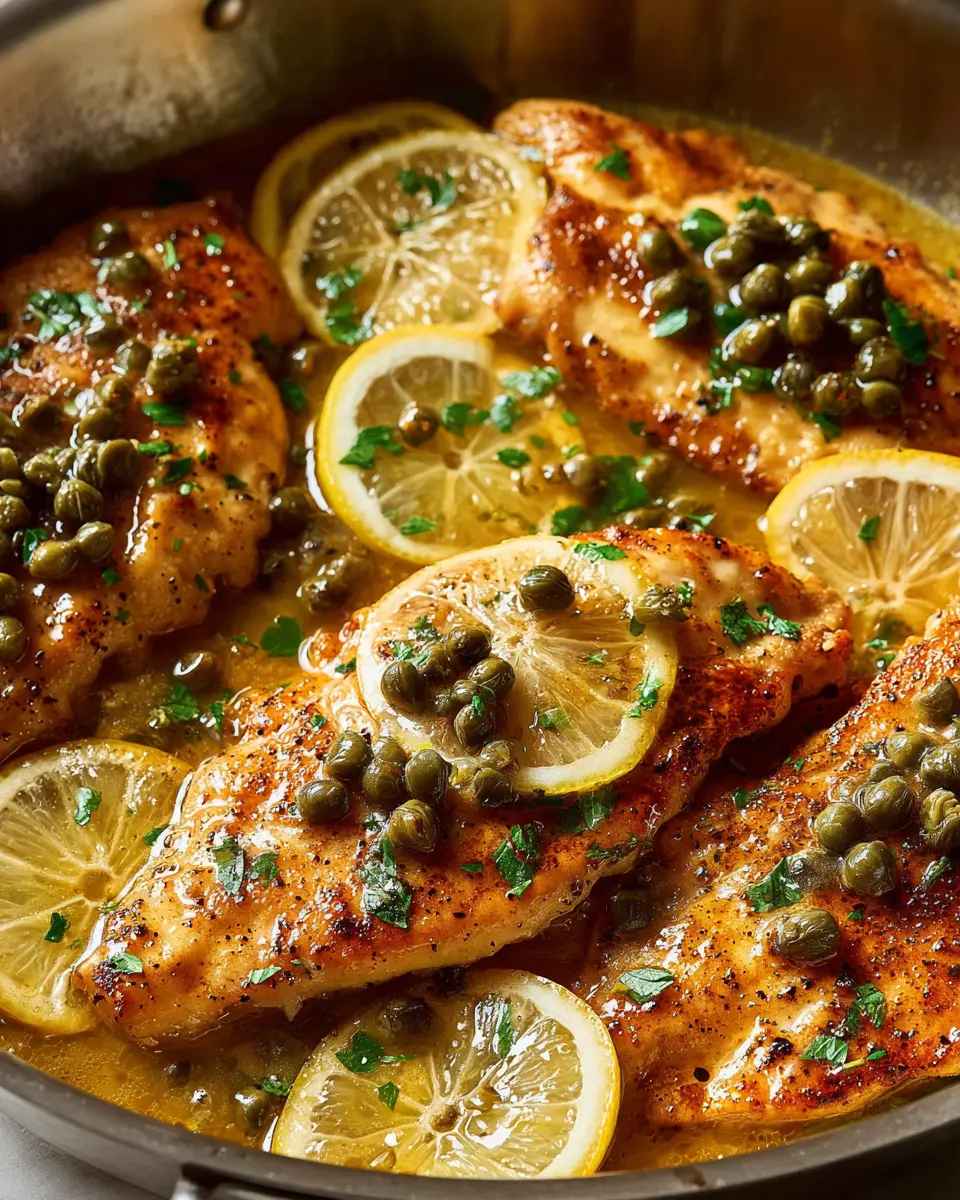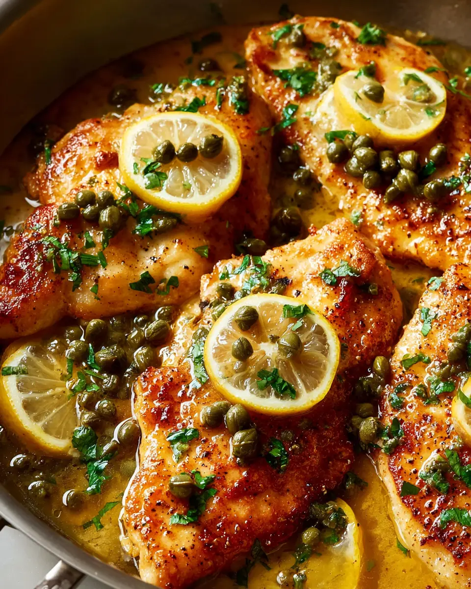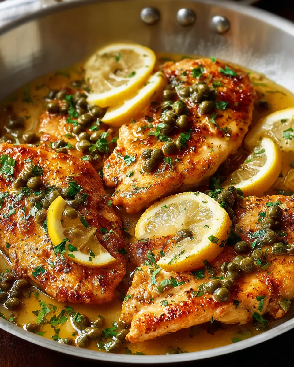 A delicious twist on the classic chicken piccata, featuring juicy chicken breasts, vibrant lemon flavors, and a savory caper sauce.