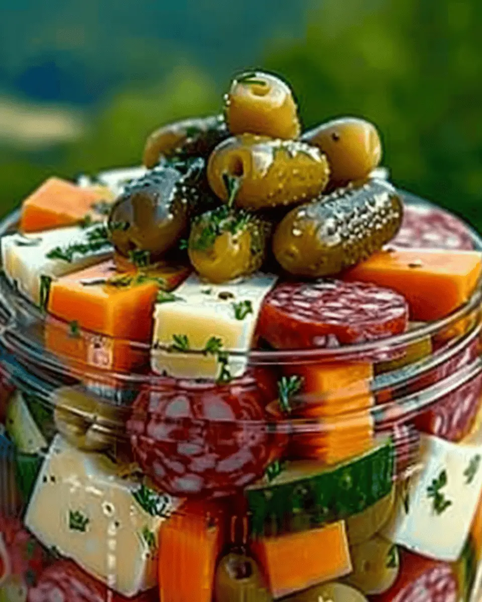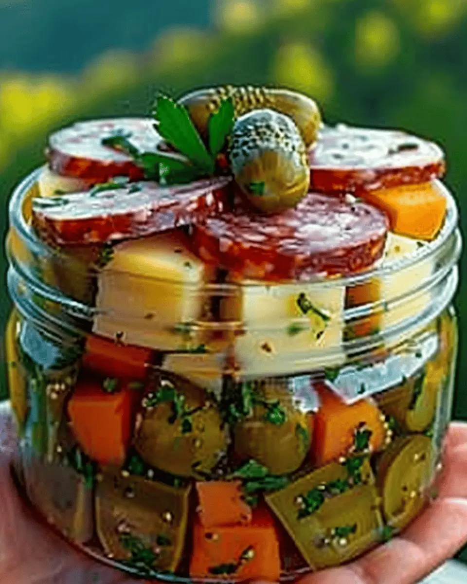 Easy Marinated Cheese Appetizer with Salami & Pickles Delight