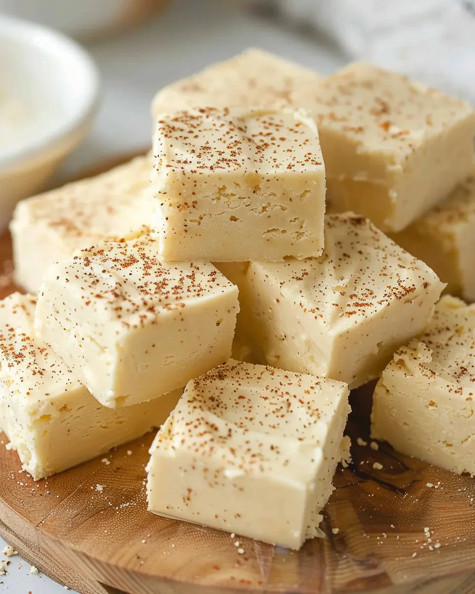 Delight in the rich flavors of Eggnog Fudge, a creamy and easy treat perfect for the holiday season.