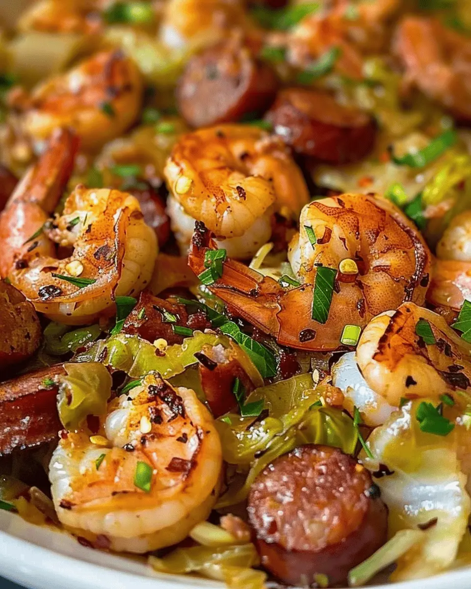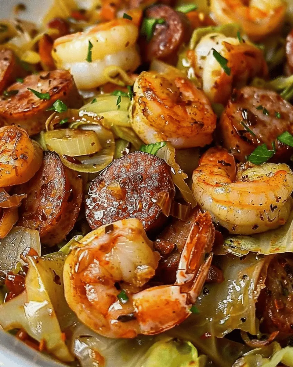 A quick and delicious recipe for fried cabbage with shrimp and sausage, perfect for busy weeknights.