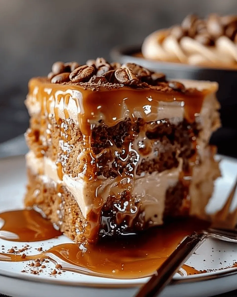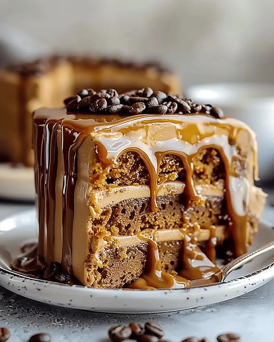 Indulge in the rich flavors of our Gooey Coffee Caramel Cake, a delightful dessert that combines the deep taste of coffee with sweet caramel.