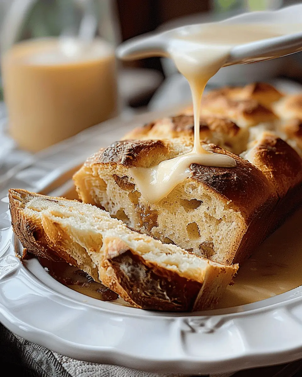 Now, slice up your warm bread and drizzle that luscious vanilla sauce over it. There you go—grandma’s old-fashioned bread has never tasted better!