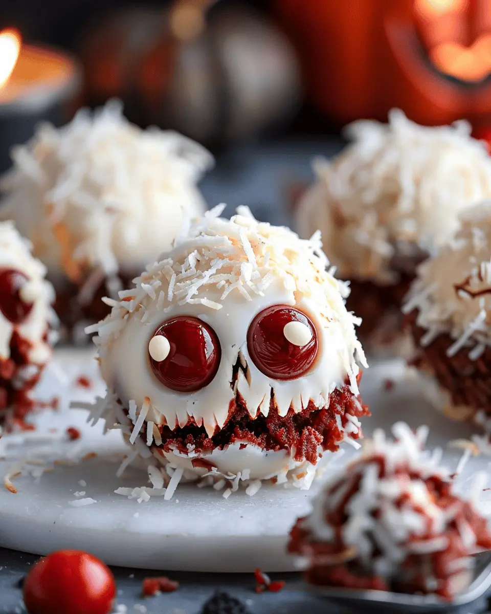 The Halloween Coconut Kiss of Death Bites are a delightful treat that combines spookiness with indulgence, making them a must-try this Halloween season. Their unique blend of coconut and chocolate creates a taste sensation that will leave your guests begging for more. Not only are they a visual treat, but they’re also an easy addition to any festive gathering or party.