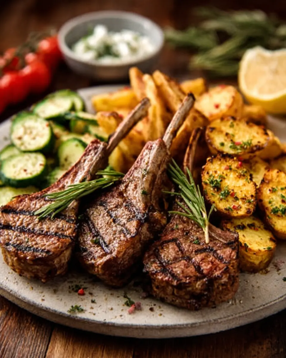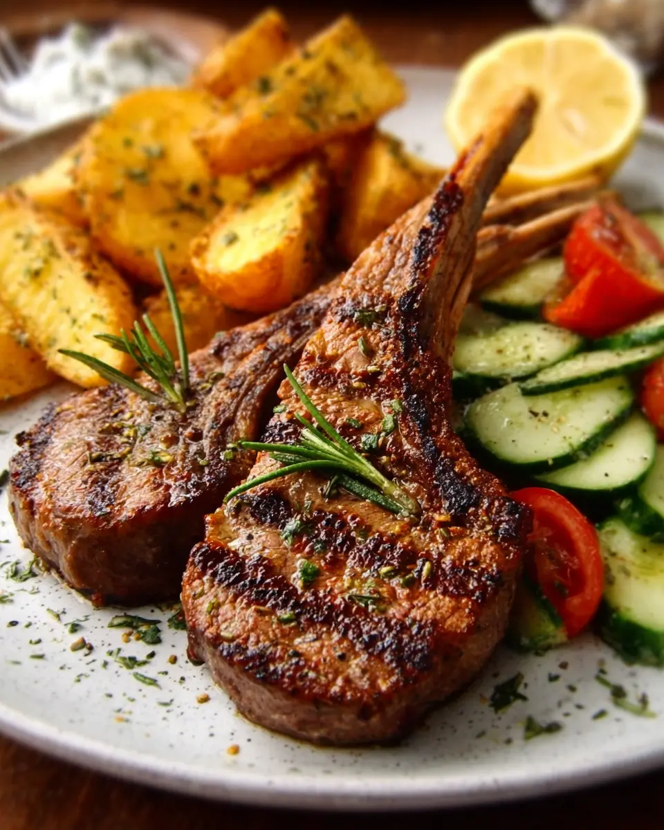 Herb-Grilled Lamb Chops with Golden Potato Wedges & Fresh Cucumber Salad