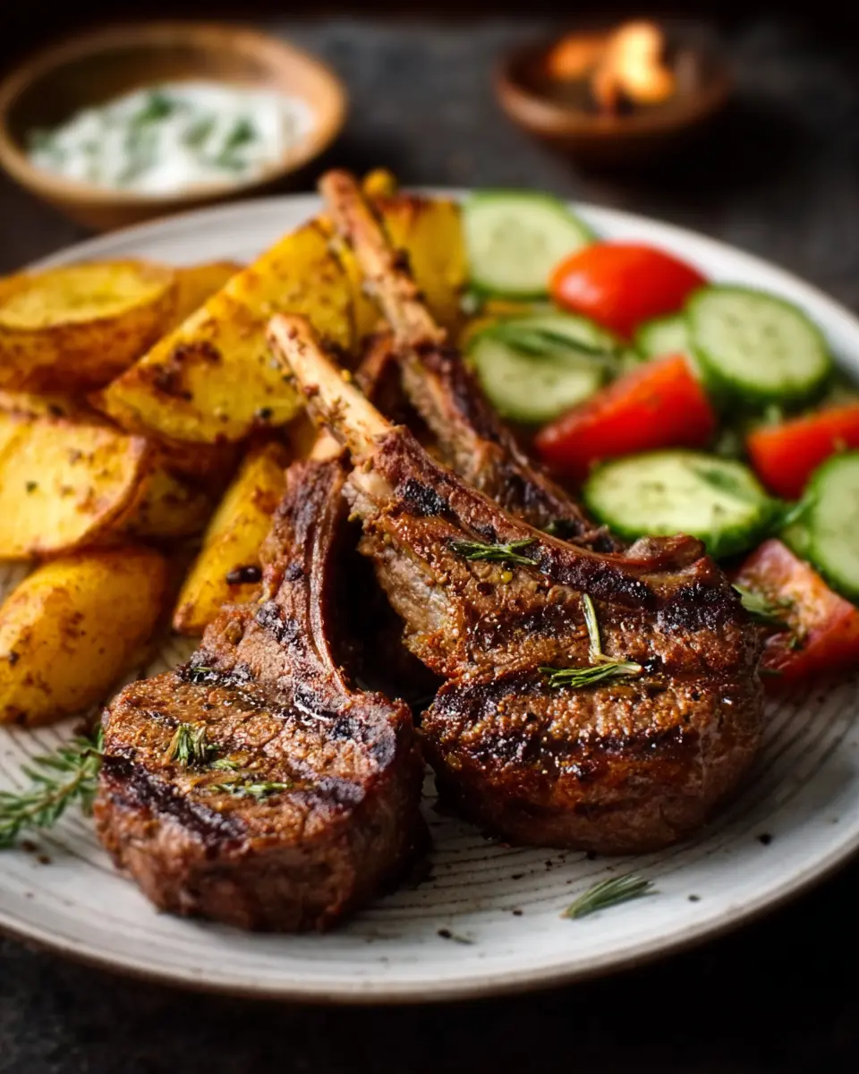 Herb Grilled Lamb Chops: Juicy Perfection with Potato Wedges & Salad