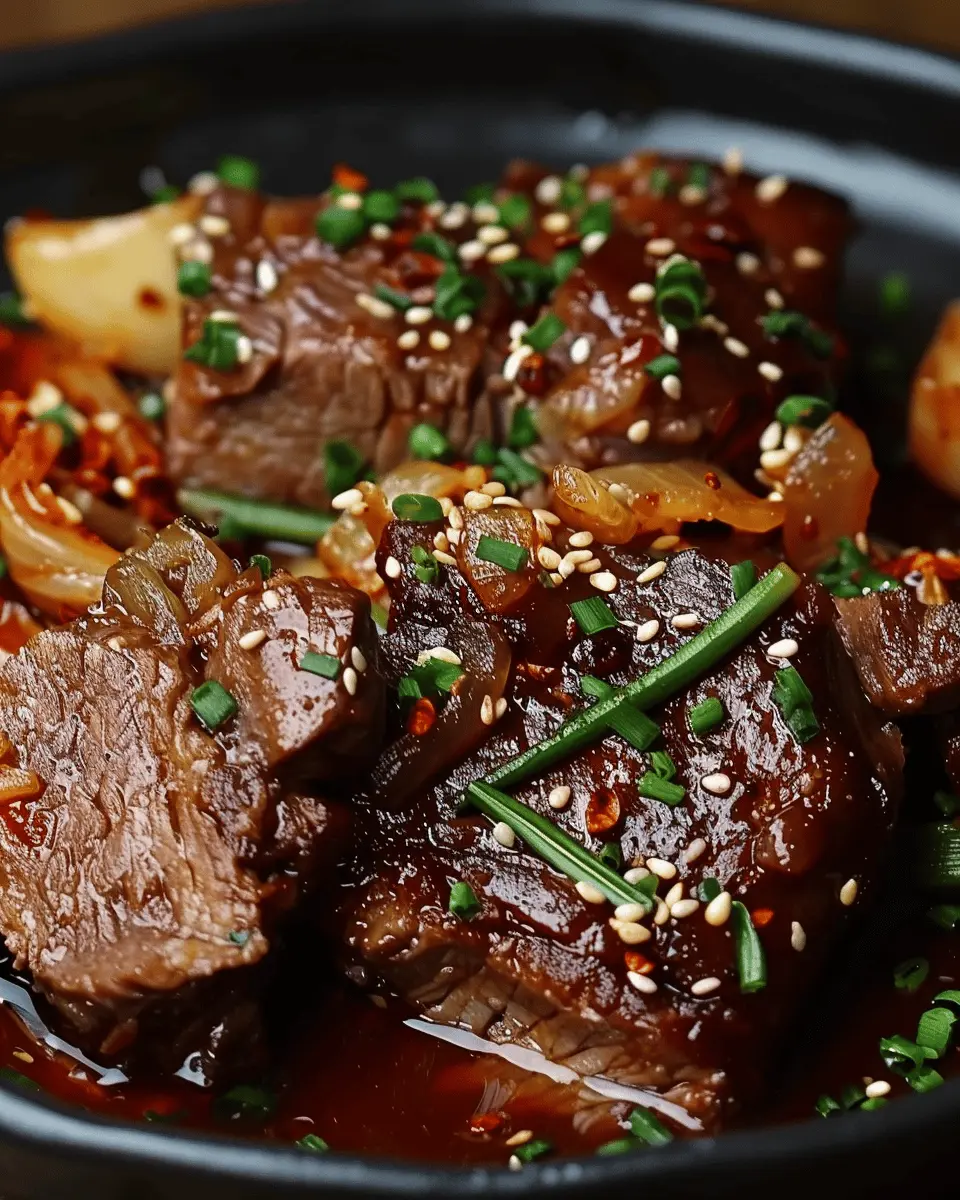 At its core, this pot roast combines tender beef with the robust flavors of gochujang, garlic, ginger, and a balance of soy sauce and brown sugar. The result? A savory, melt-in-your-mouth dish that pairs beautifully with steamed rice or crusty bread. It’s perfect for cozy family dinners or gatherings with friends, making it an ideal recipe for every home cook looking to impress without spending all day in the kitchen.