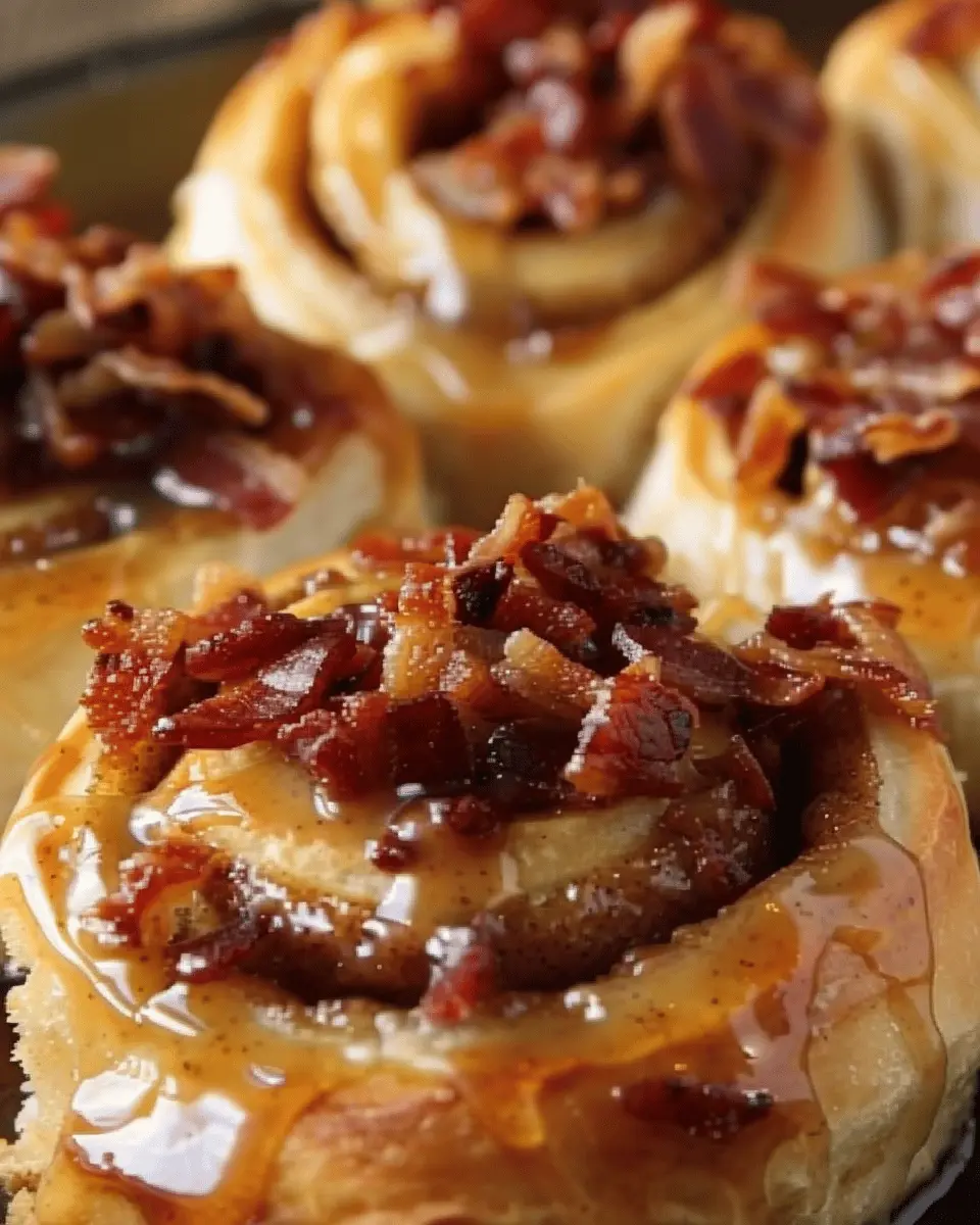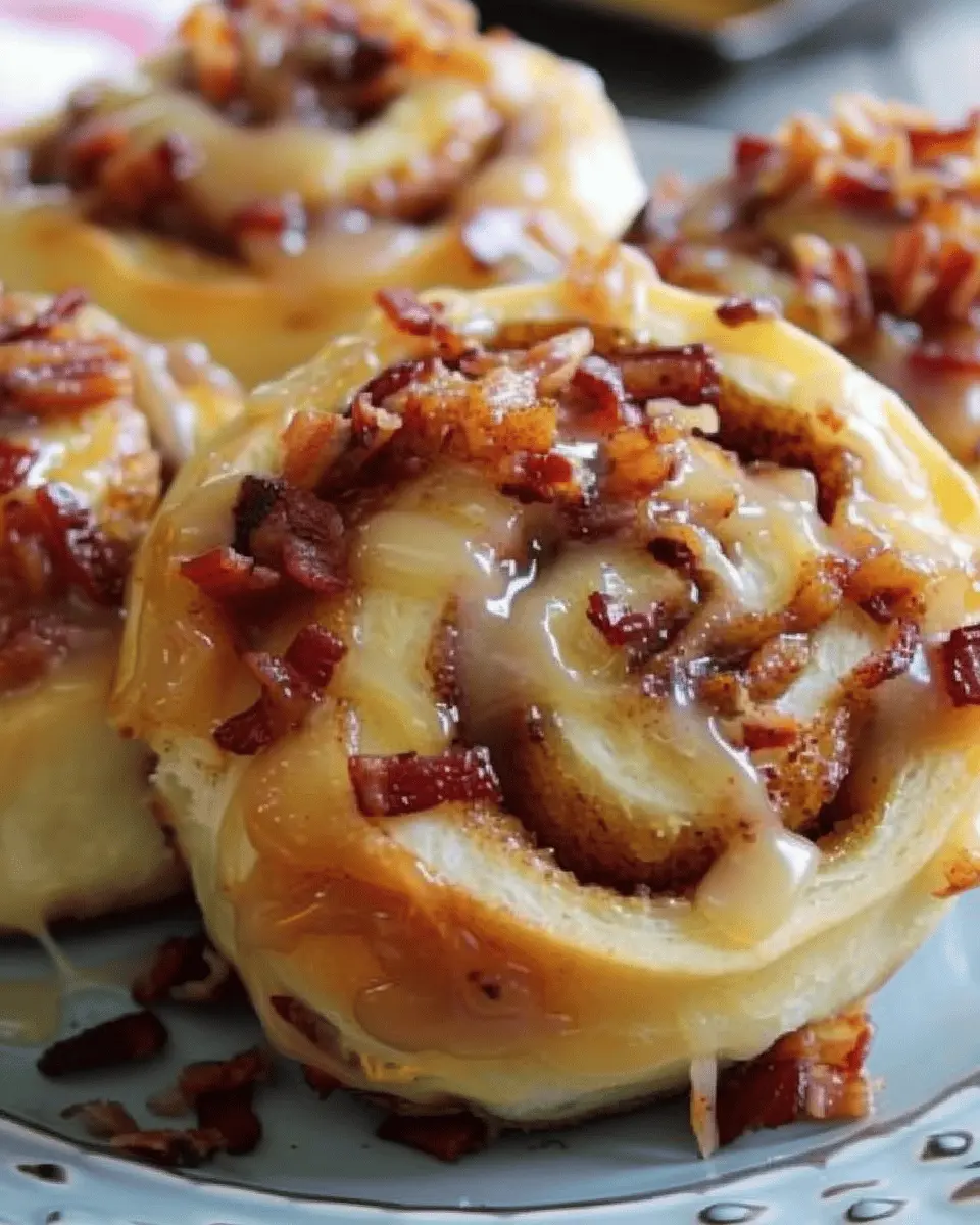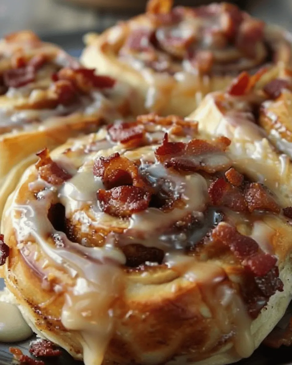 Indulge in the delightful combination of sweet and savory with these Maple Turkey Bacon Cinnamon Rolls, perfect for a special breakfast or brunch.
