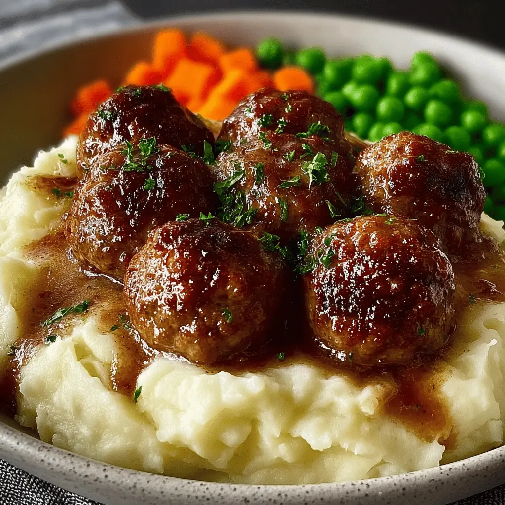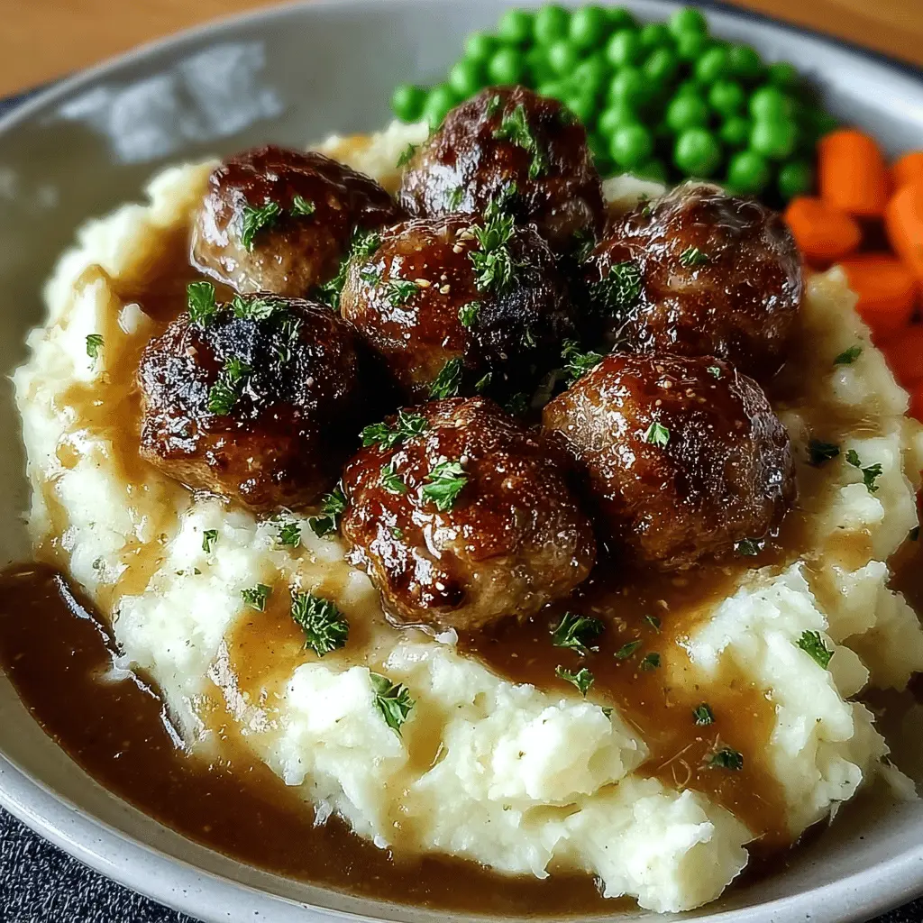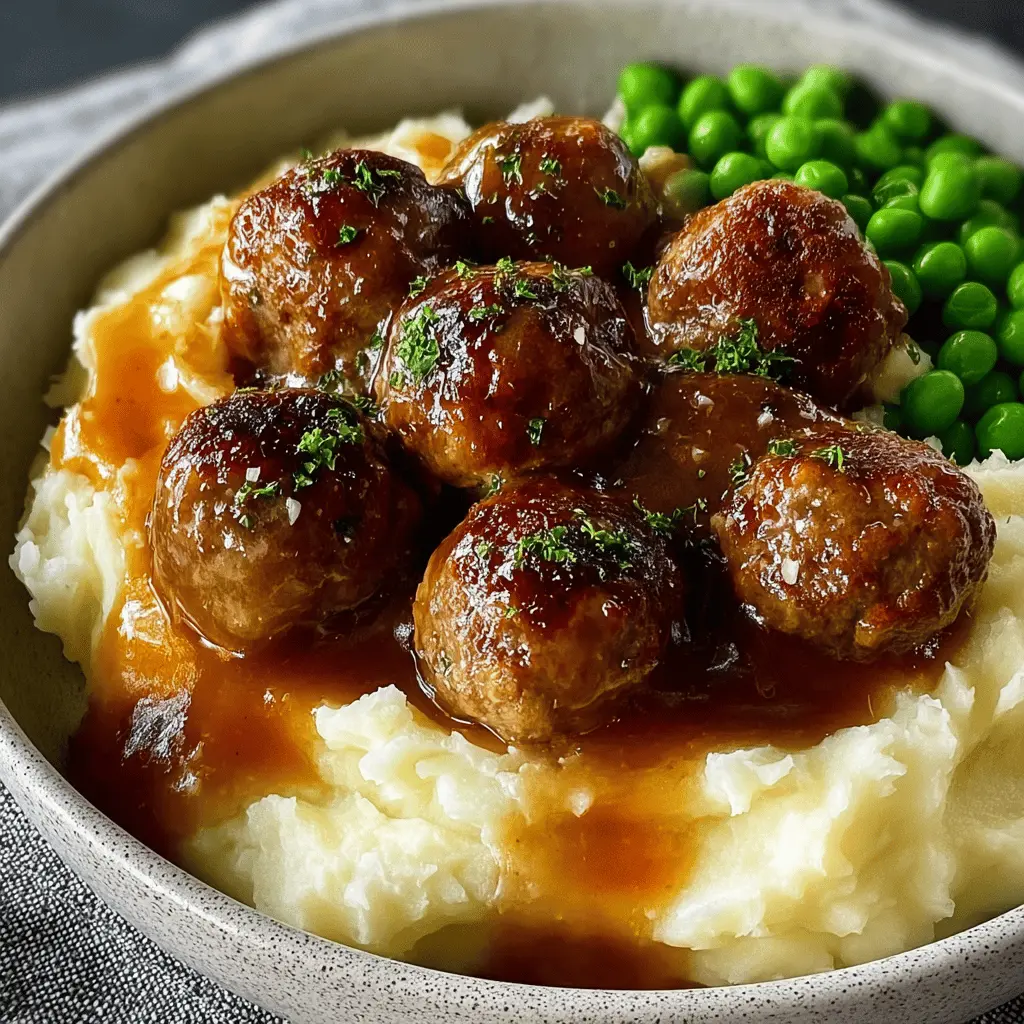 Now, you’re all set to serve. Plate up a hearty portion of meatballs with mashed potatoes, topped with the rich gravy and a side of vibrant carrots and peas. This meal will not only satisfy your hunger but also warm your heart, reminding you of those cozy family dinners. Enjoy your creation; you’ve earned it!