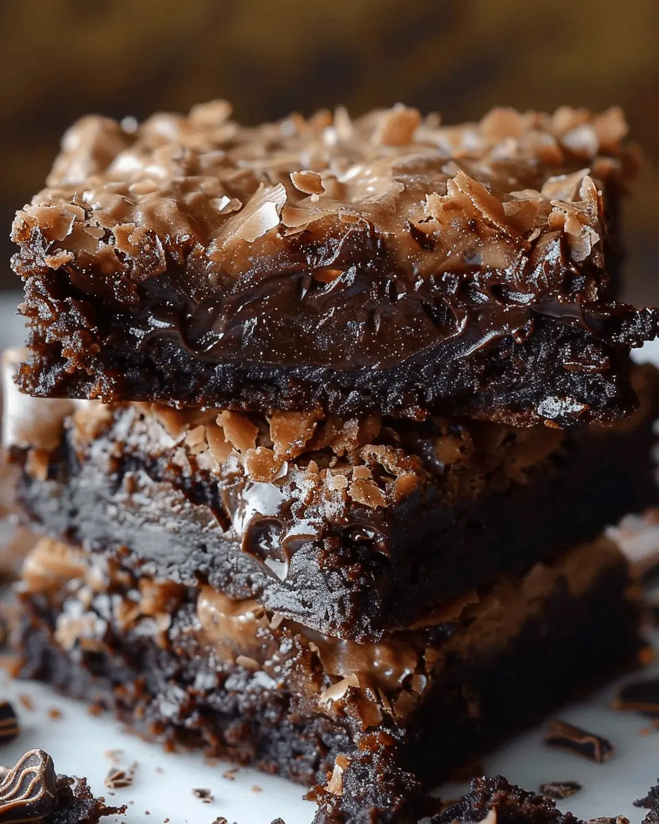Once you’ve topped them off, let the brownies set for a few minutes, then slice them into squares. Each bite will take you on a delightful journey of chocolate, coconut, and pure bliss.