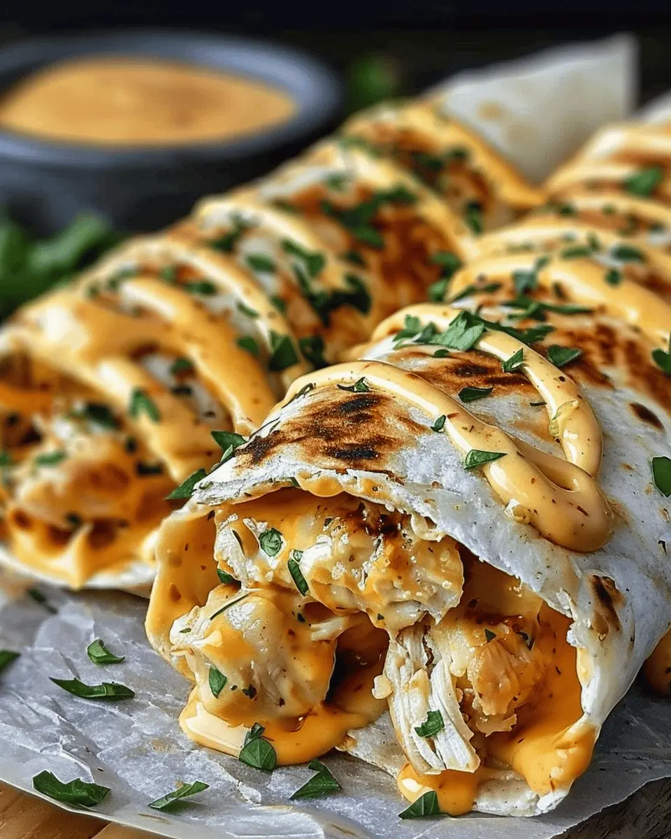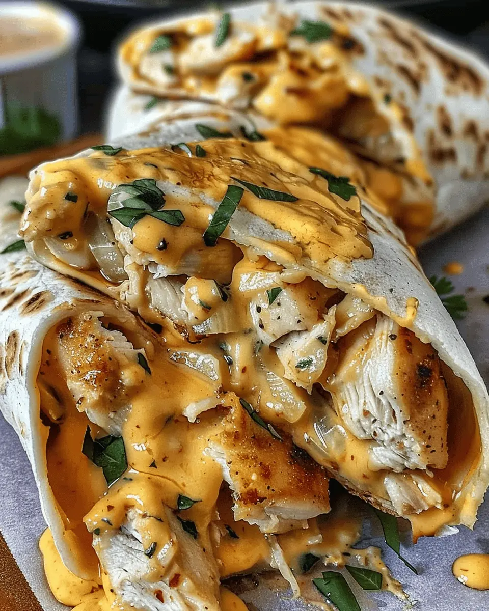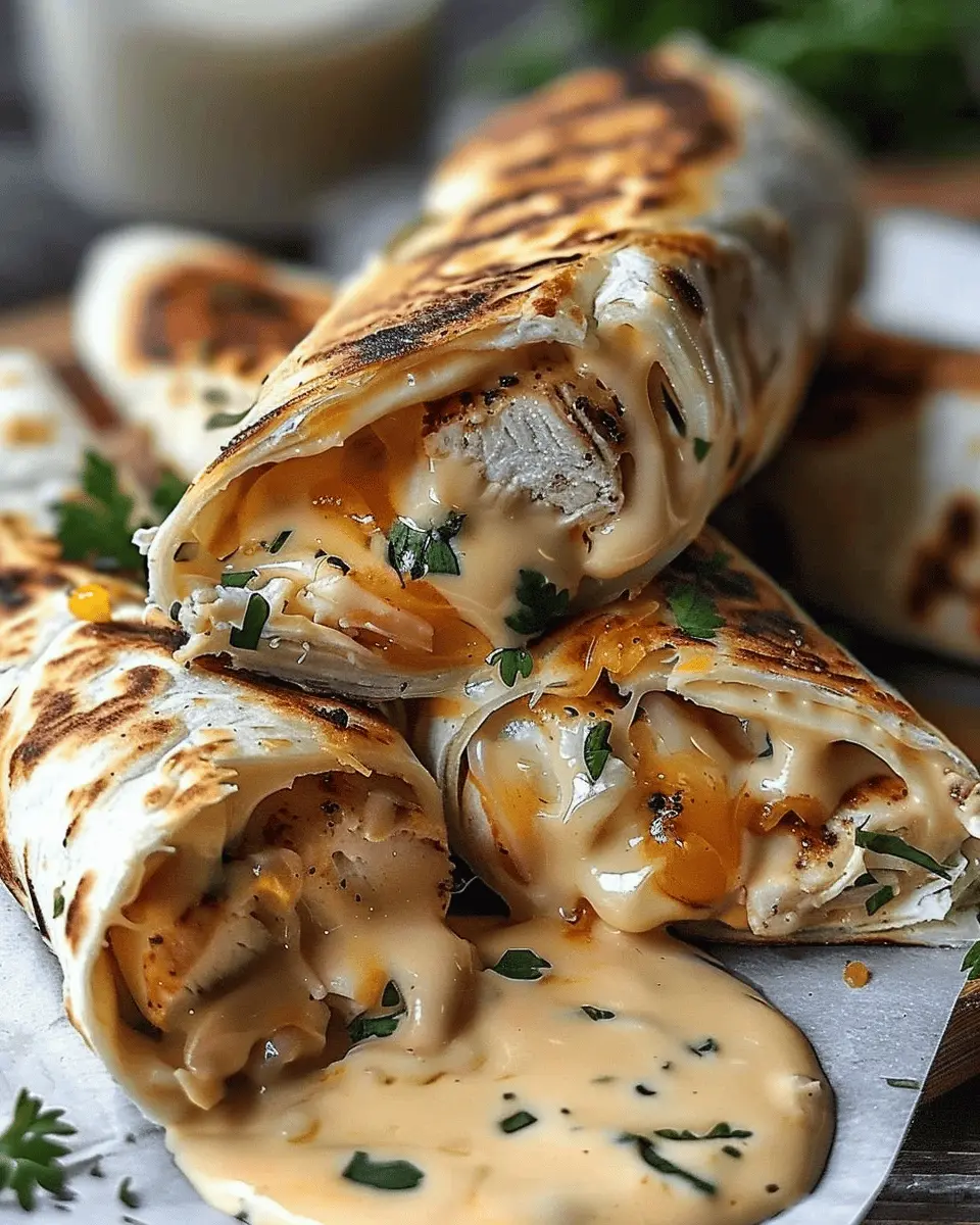 In summary, these ooey-gooey cheesy garlic chicken wraps are a fantastic option for anyone wanting a quick, satisfying meal that doesn’t compromise on flavor. Picture creamy cheese, savory chicken ham, and crispy turkey bacon nestled in warm tortillas – simply irresistible. Whether you’re prepping for a busy week or a cozy weekend dinner, these wraps are versatile enough to accommodate your taste buds.