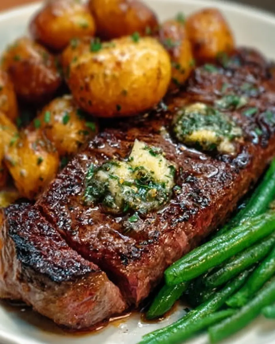 Keywords: Pan-Seared Steak, Garlic Butter, Herb Potatoes, Green Beans