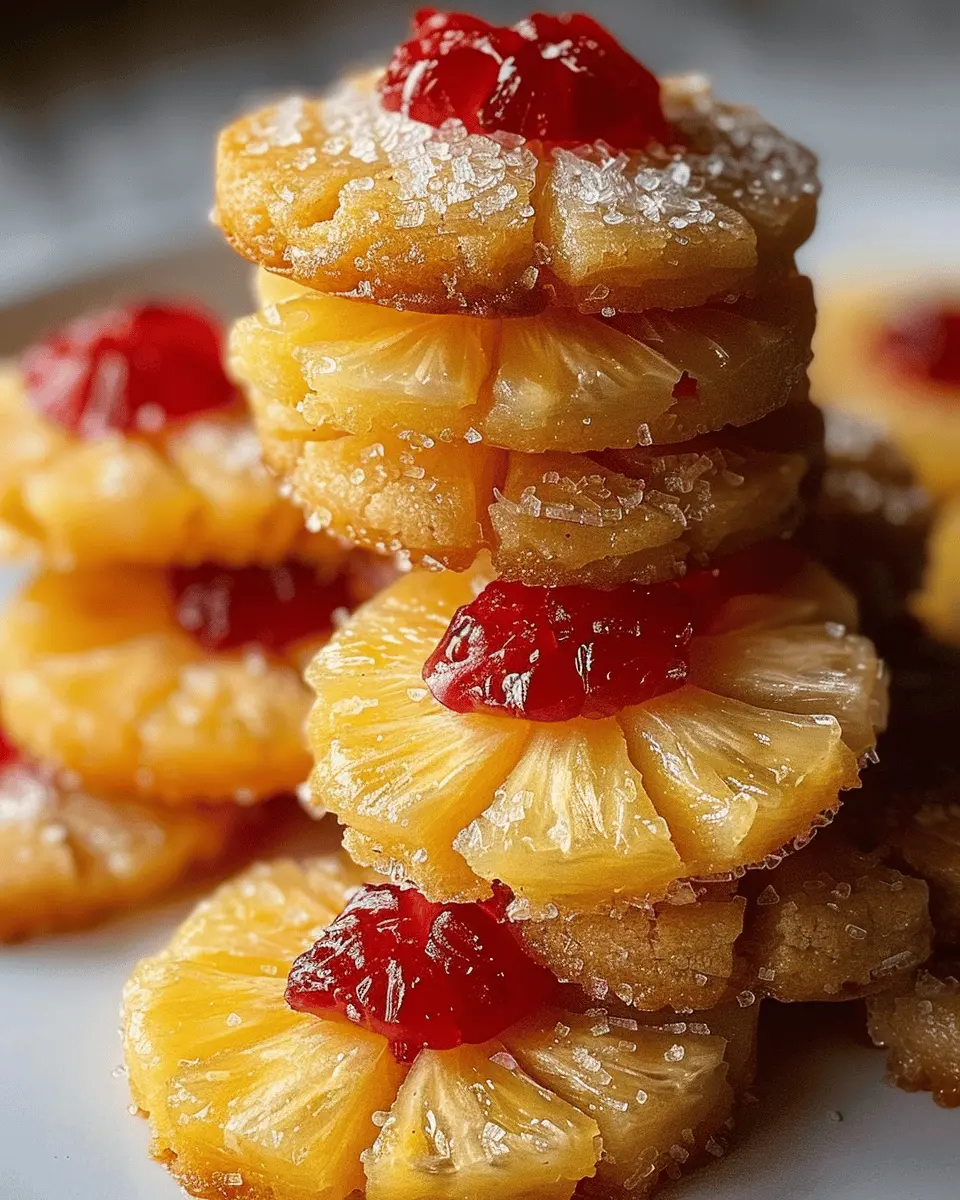Indulge in these delightful Pineapple Upside Sugar Cookies that combine the tropical flavor of pineapple with a classic sugar cookie base. Perfect for any occasion!