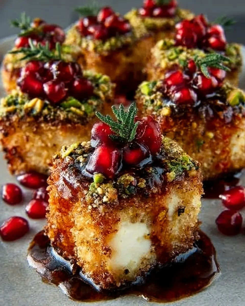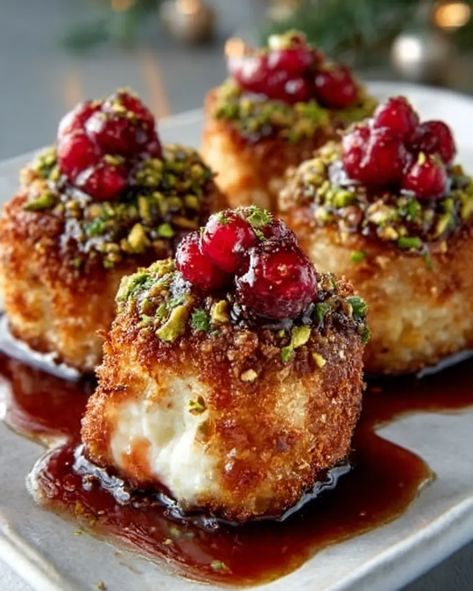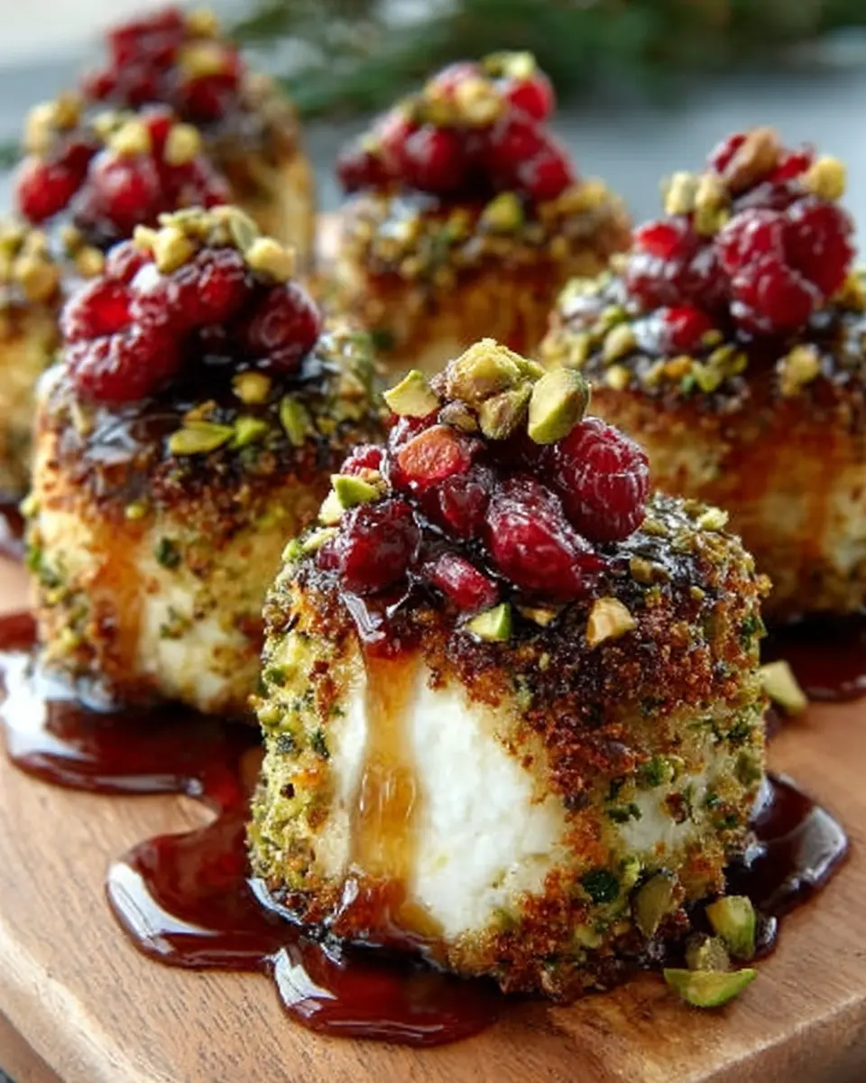 Keywords: Pistachio-Crusted Brie Bites, Raspberry Honey Glaze, appetizers, indulgent treats