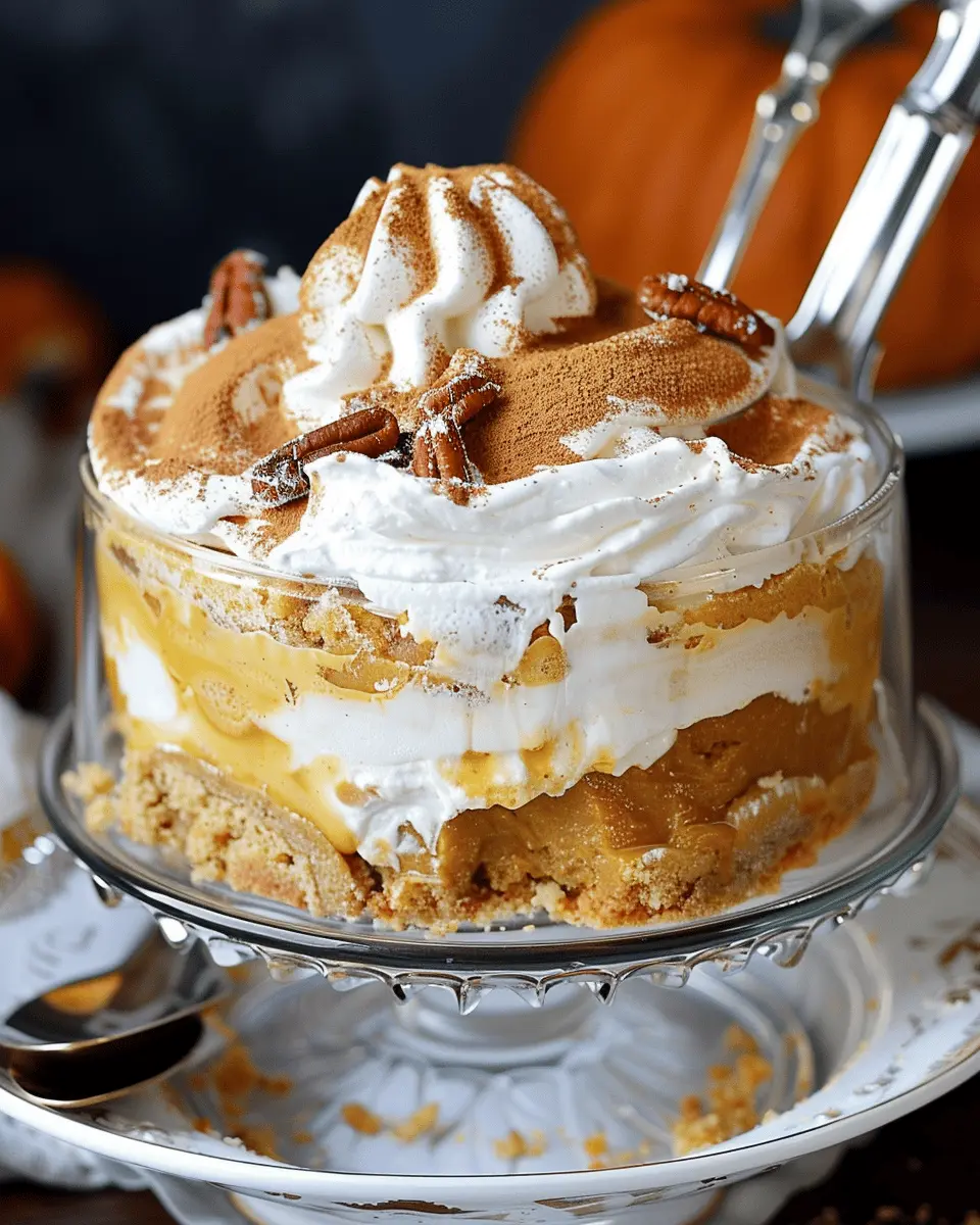 A delightful blend of pumpkin and cheesecake layered in a trifle, perfect for fall gatherings.