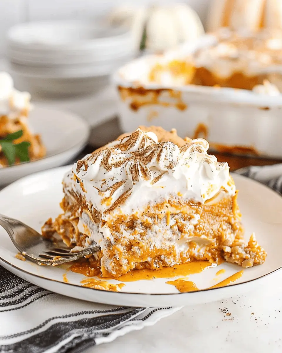In a mixing bowl, combine the crushed graham crackers, melted butter, and sugar until the mixture resembles wet sand. Next, press the crust into the bottom of your prepared baking dish, ensuring it’s evenly spread. Bake for about 10 minutes, until slightly golden. This will add a crispy texture that pairs beautifully with the creamy pumpkin layers.