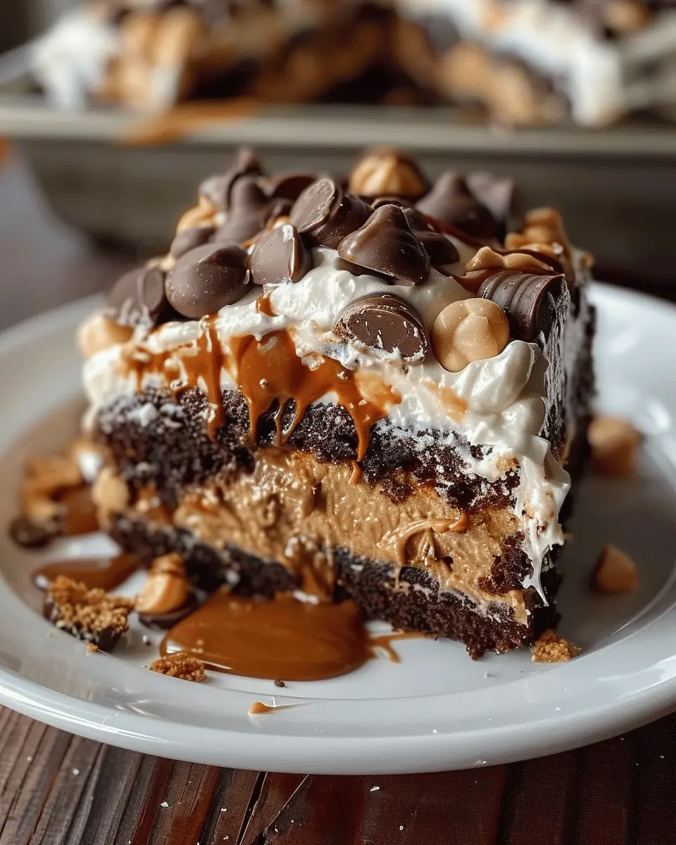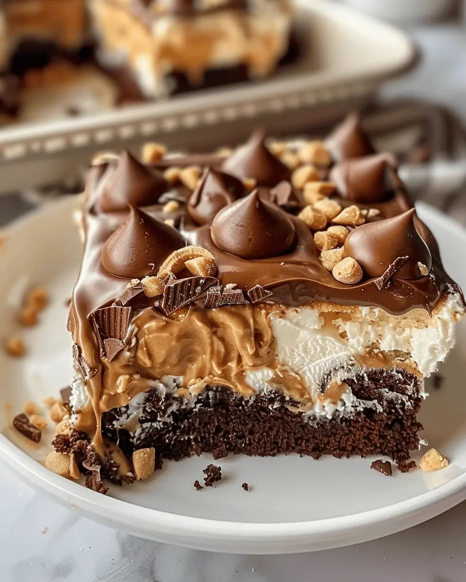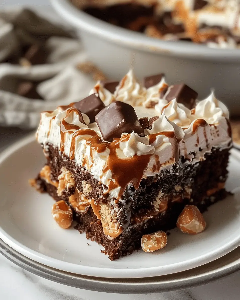 A decadent and easy-to-make poke cake perfect for peanut butter and chocolate lovers.