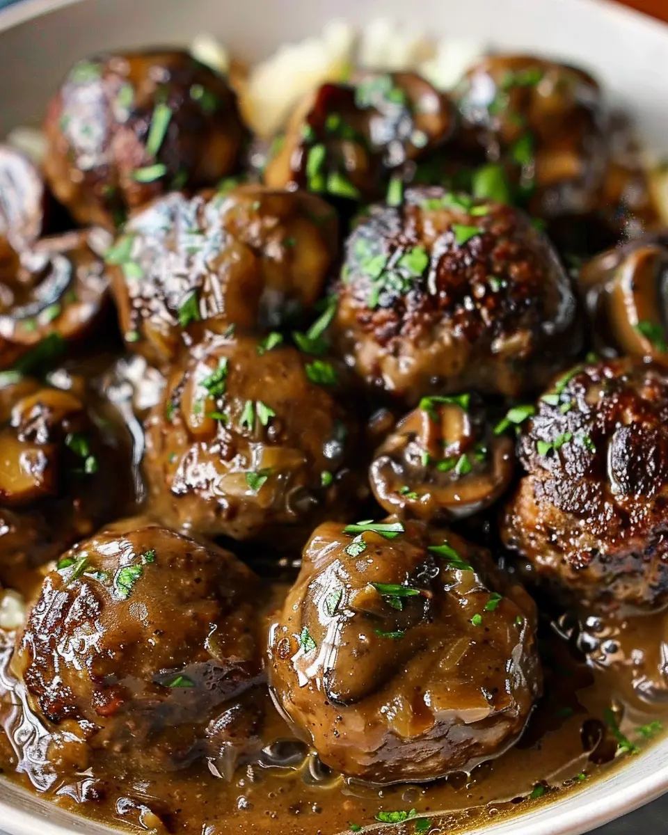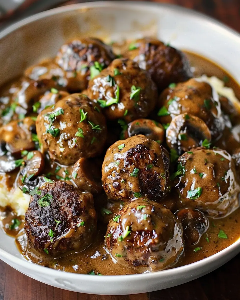 Salisbury Steak Meatballs in Rich Mushroom Gravy: A Comforting Indulgence