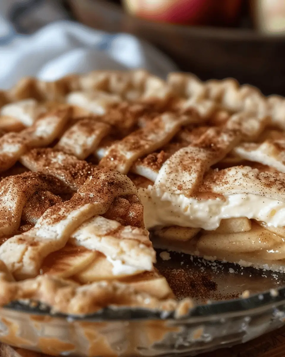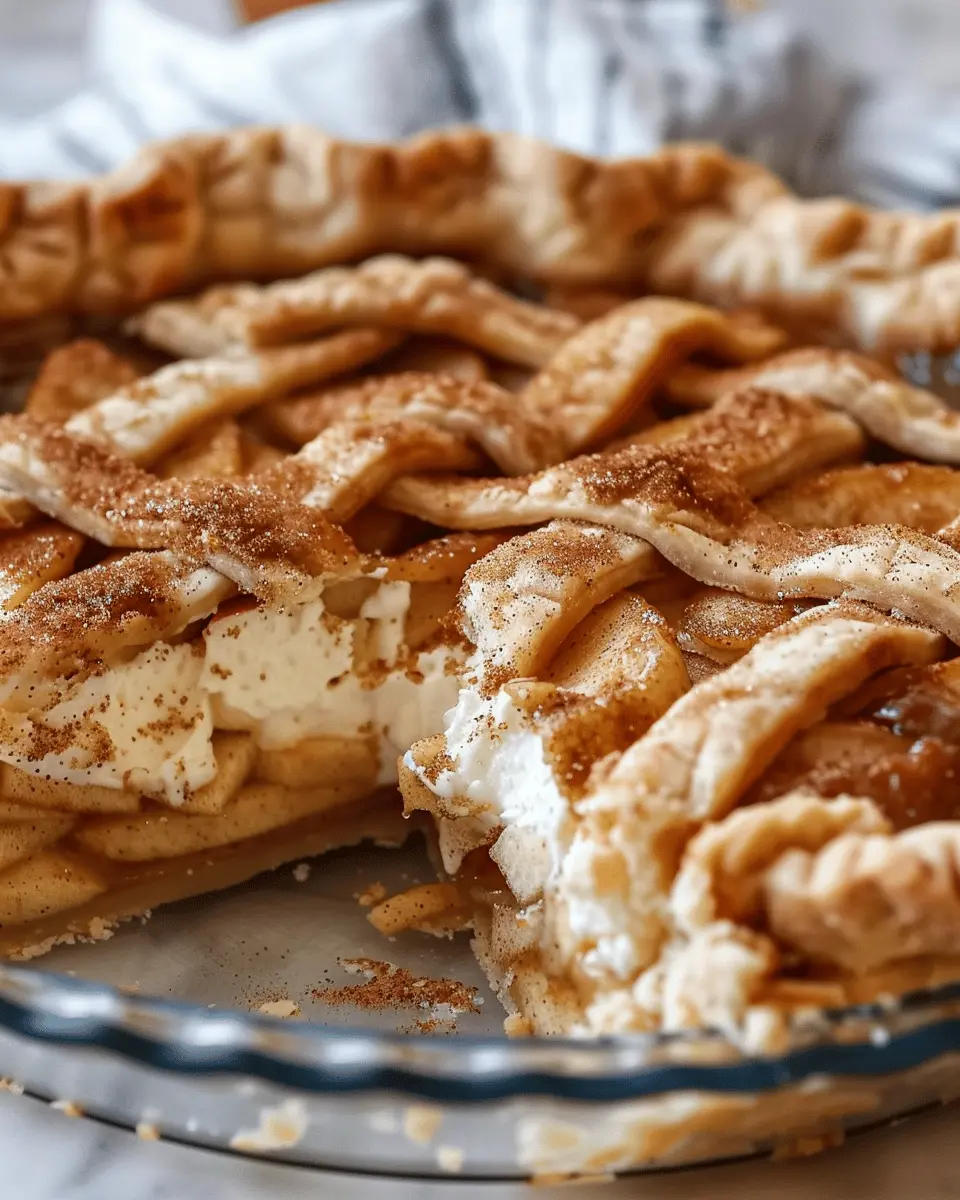 Indulge in the warm flavors of fall with this Snickerdoodle Cream Cheese Apple Pie, a delightful twist on the classic dessert.