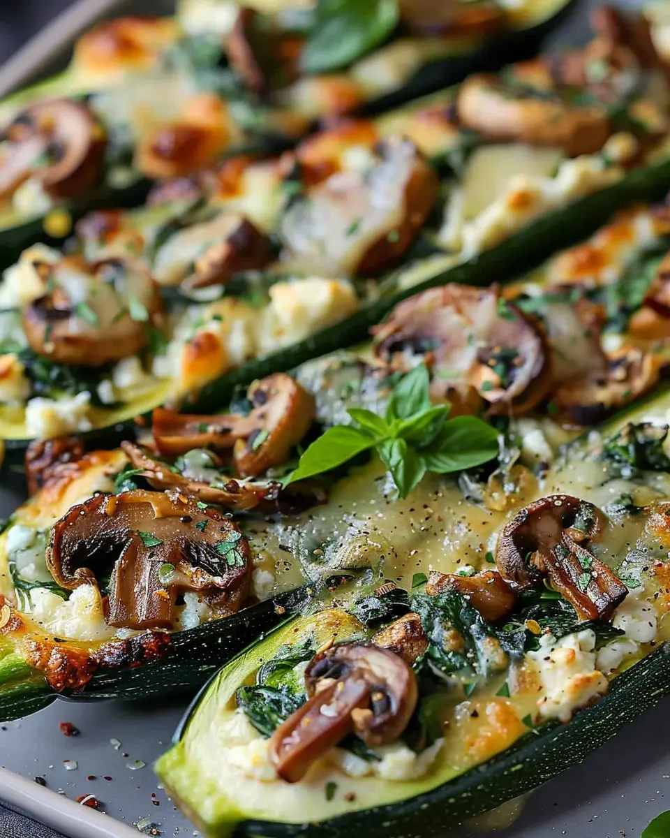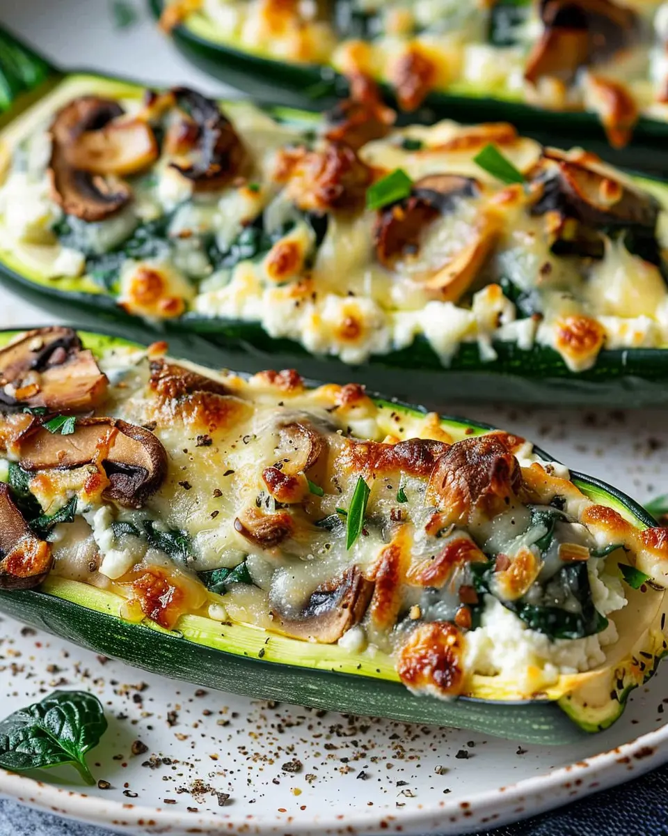 Delight in these easy-to-make Spinach, Mushroom, and Ricotta Stuffed Zucchini Boats, perfect for a healthy dinner or appetizer.