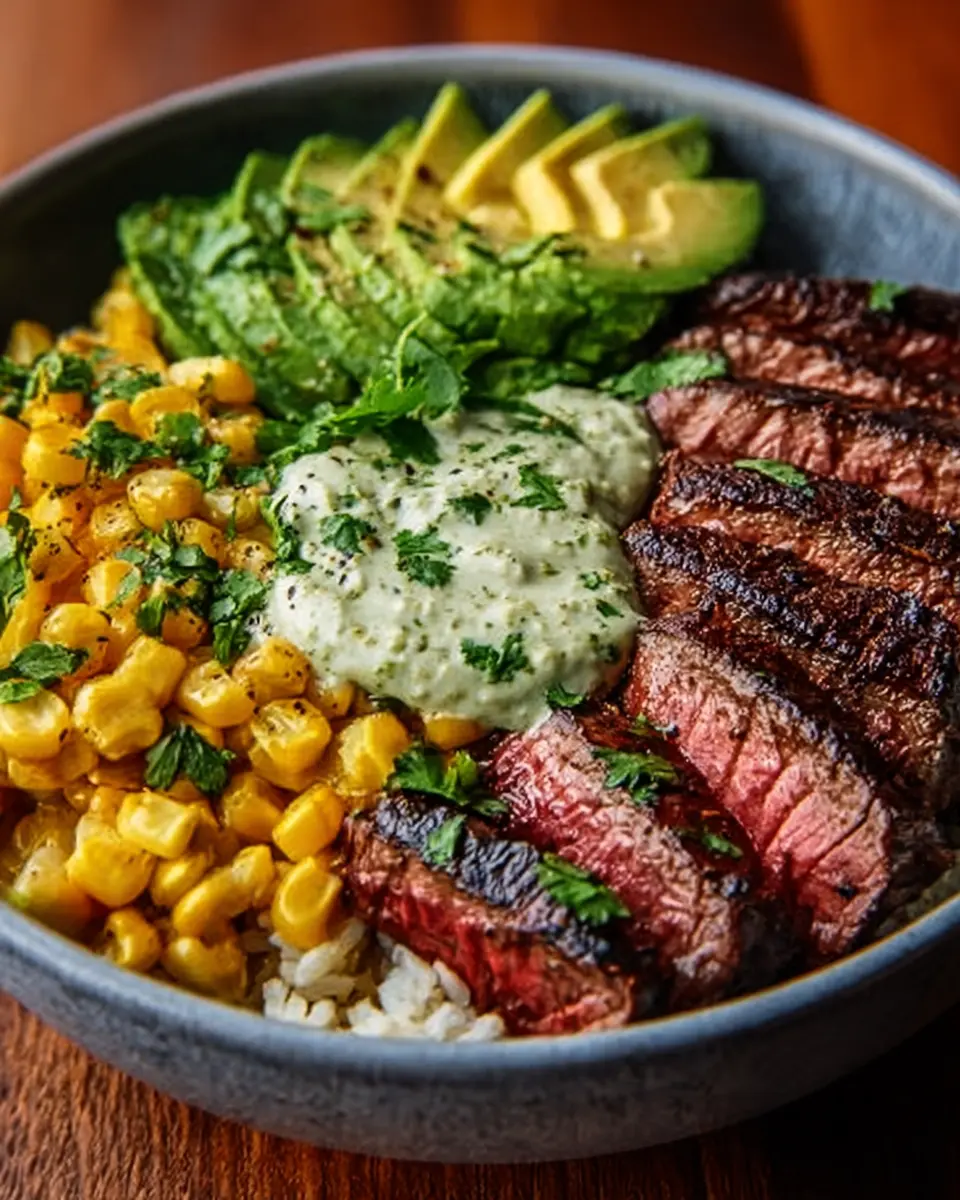 Steak Avocado Corn Bowl: A Delicious Twist with Cilantro Cream Sauce