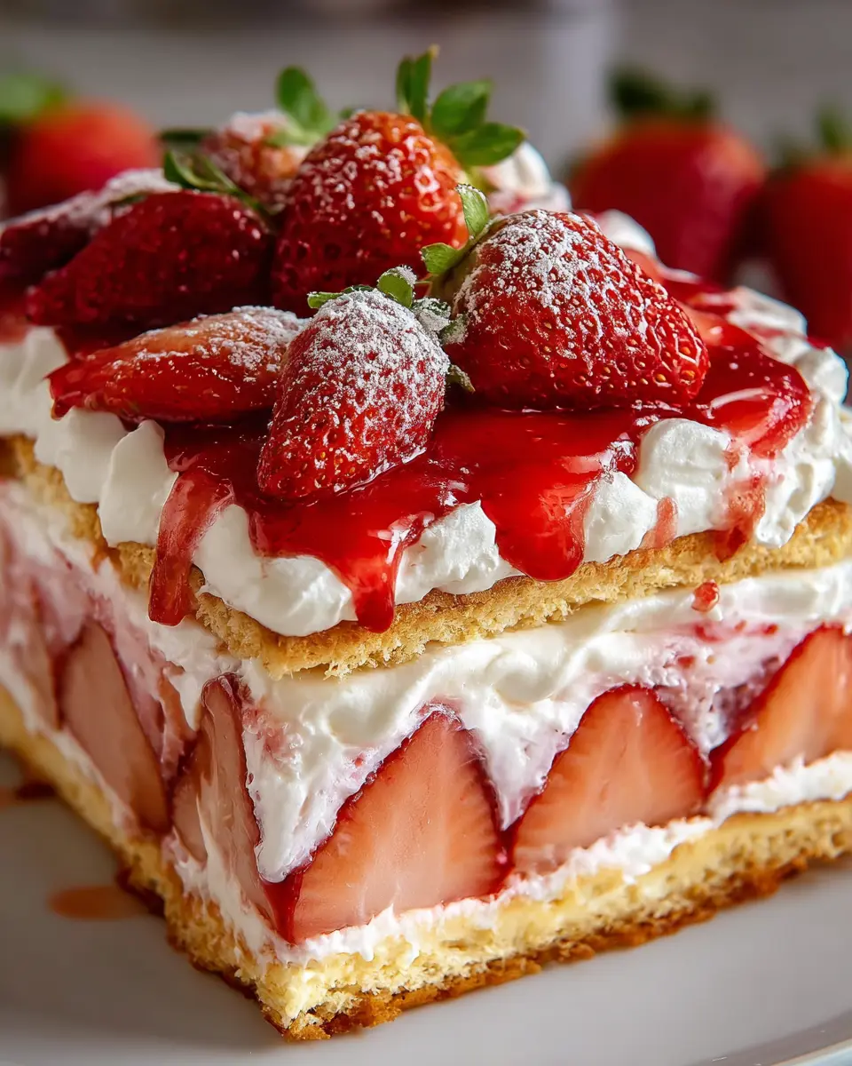 - Cream & Strawberries Again: Spread the remaining cream filling, followed by another layer of sliced strawberries. This repetition not only adds flavor but also builds that height, giving your strawberry éclair cake an impressive look.