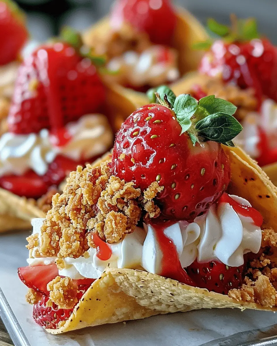 Layer wisely: When assembling your tacos, start with the cheesecake filling, then add fresh strawberries, and top with the crunchy topping. This way, each bite bursts with flavor!