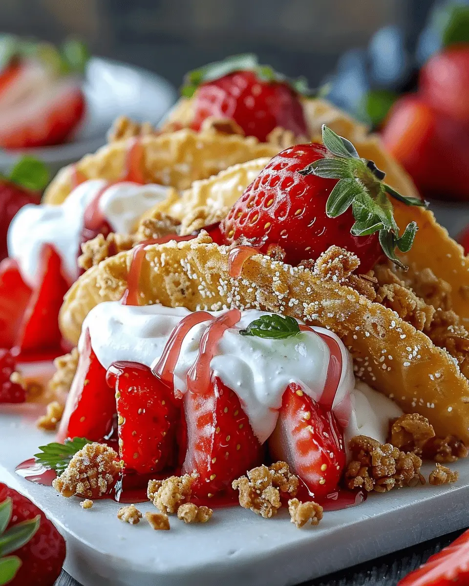 If you’re craving a taste of paradise, why not switch up the toppings? Swap out strawberries for a blend of tropical fruits like pineapple, mango, and kiwi. You can even add a sprinkle of toasted coconut for extra flair! To make the filling, mix cream cheese with a hint of lime juice and zest for a refreshing touch. These tropical fruit tacos are perfect for summer parties and will transport your taste buds to a sunny beach.