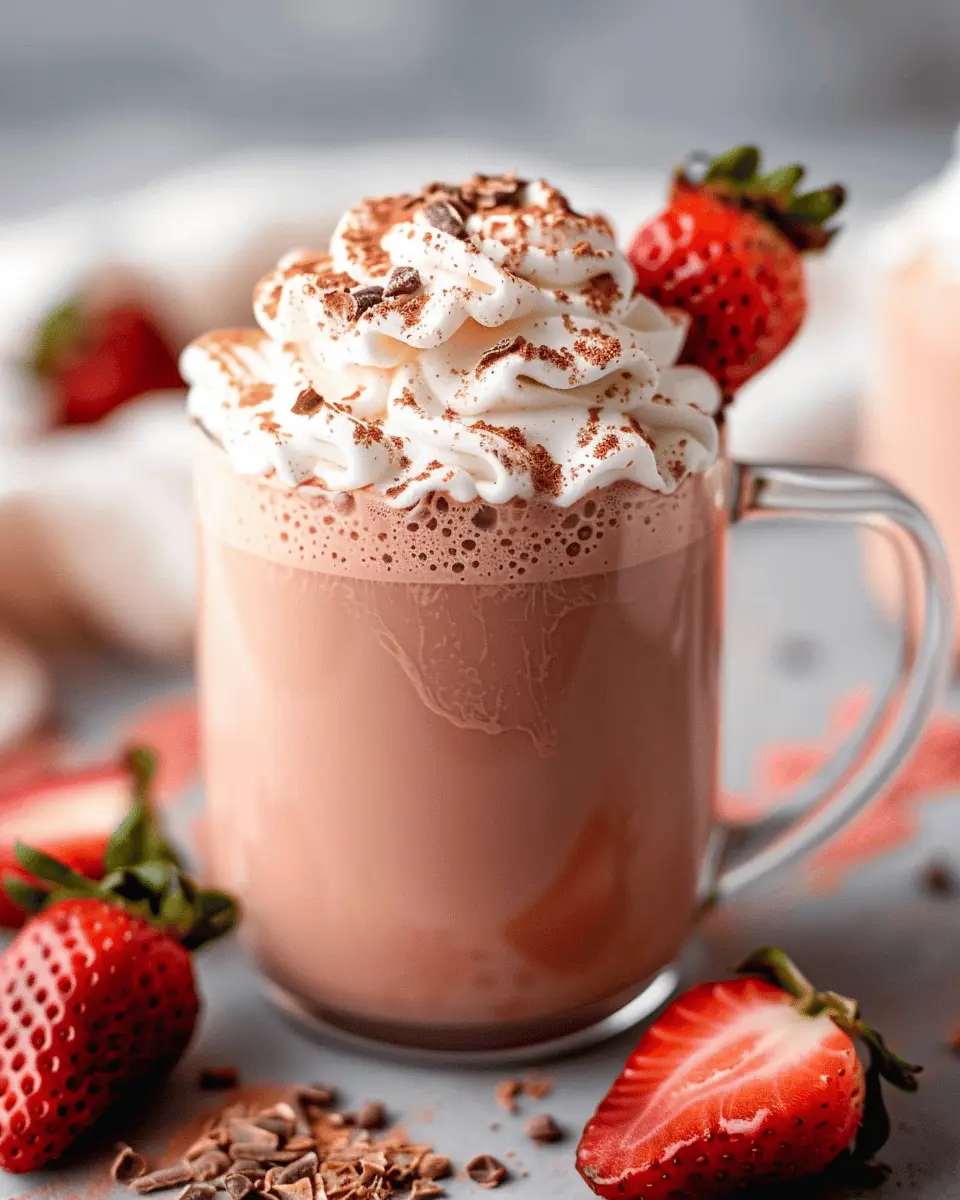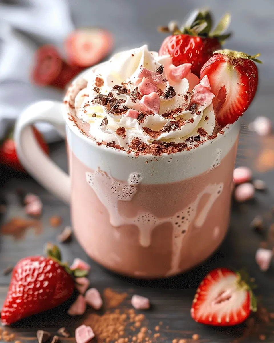 Enjoy a rich and creamy strawberry hot chocolate perfect for cozy evenings.