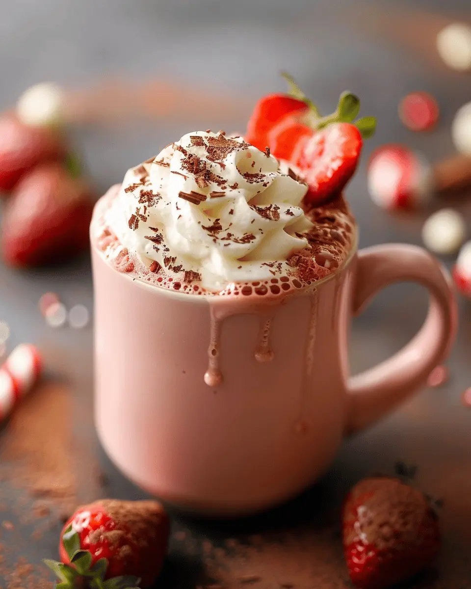 Keywords: Strawberry Hot Chocolate, Cozy Treat, Winter Drinks